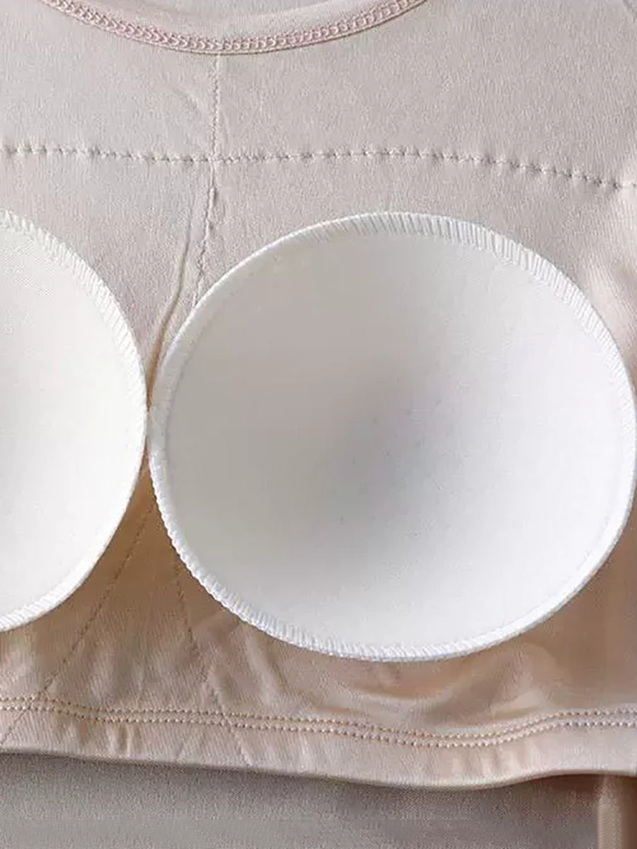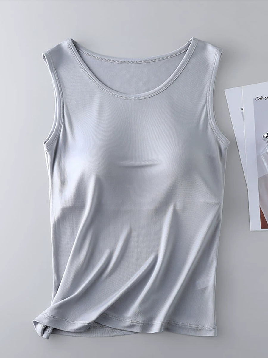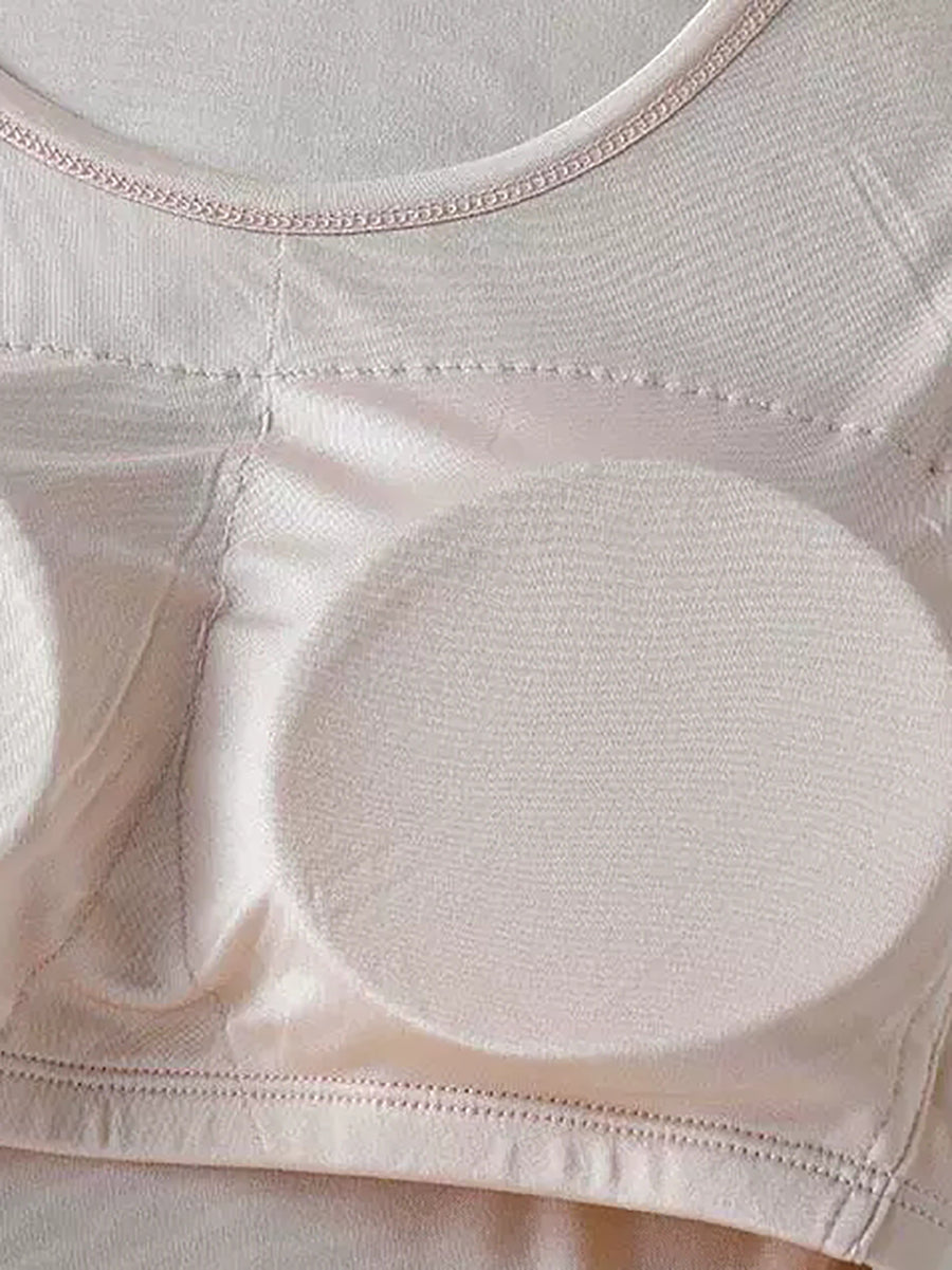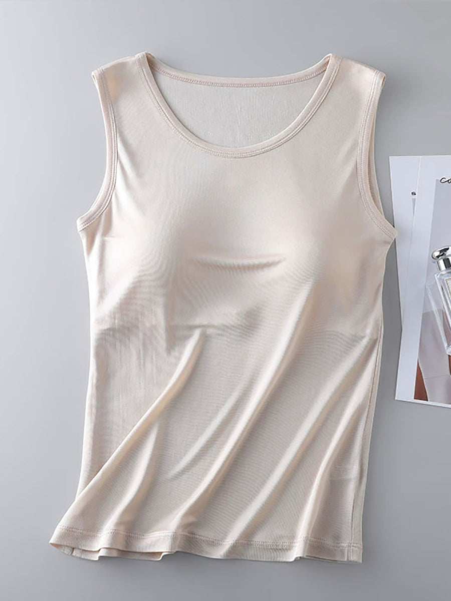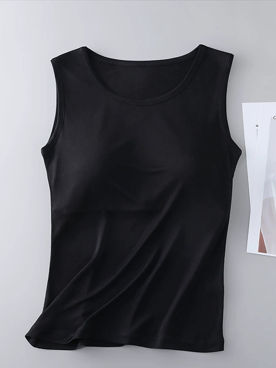 Women Pure Color O-Neck With Bra Pads Base Vest