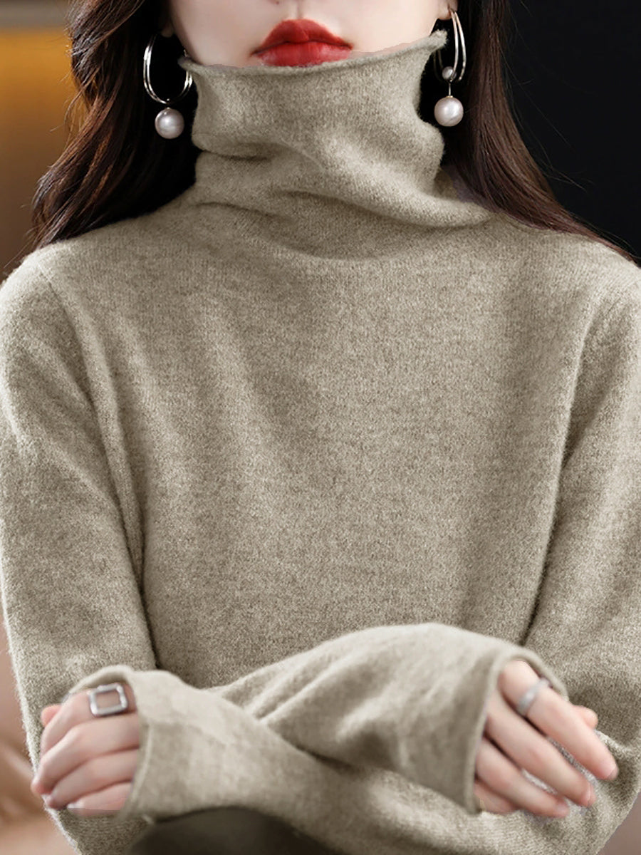 Women Autumn Casual Knitted Wool Turtleneck Sweater