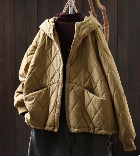 Women Autumn Casual Pure Color Padded Hooded Jacket