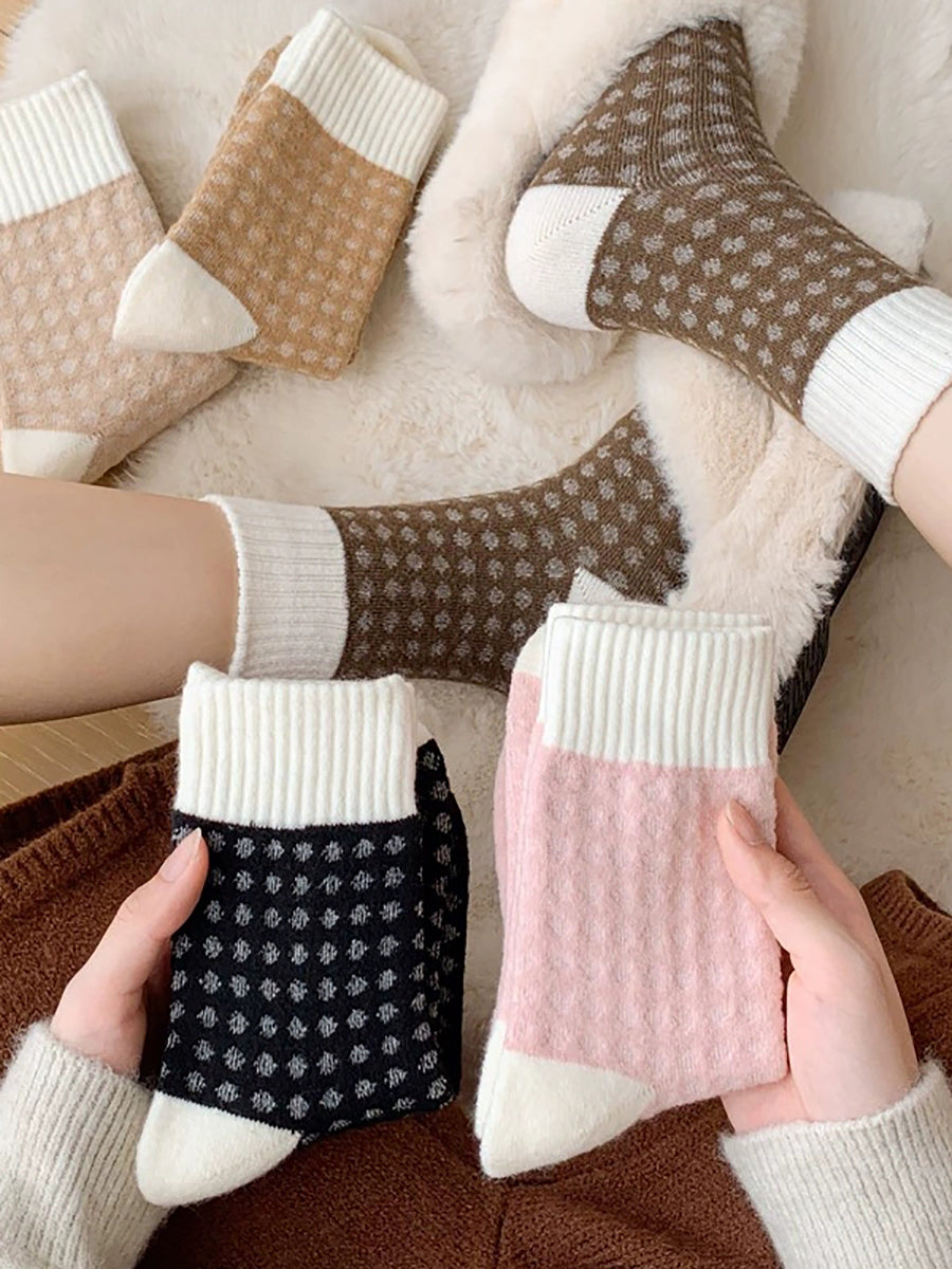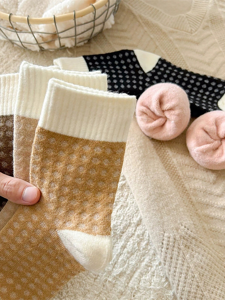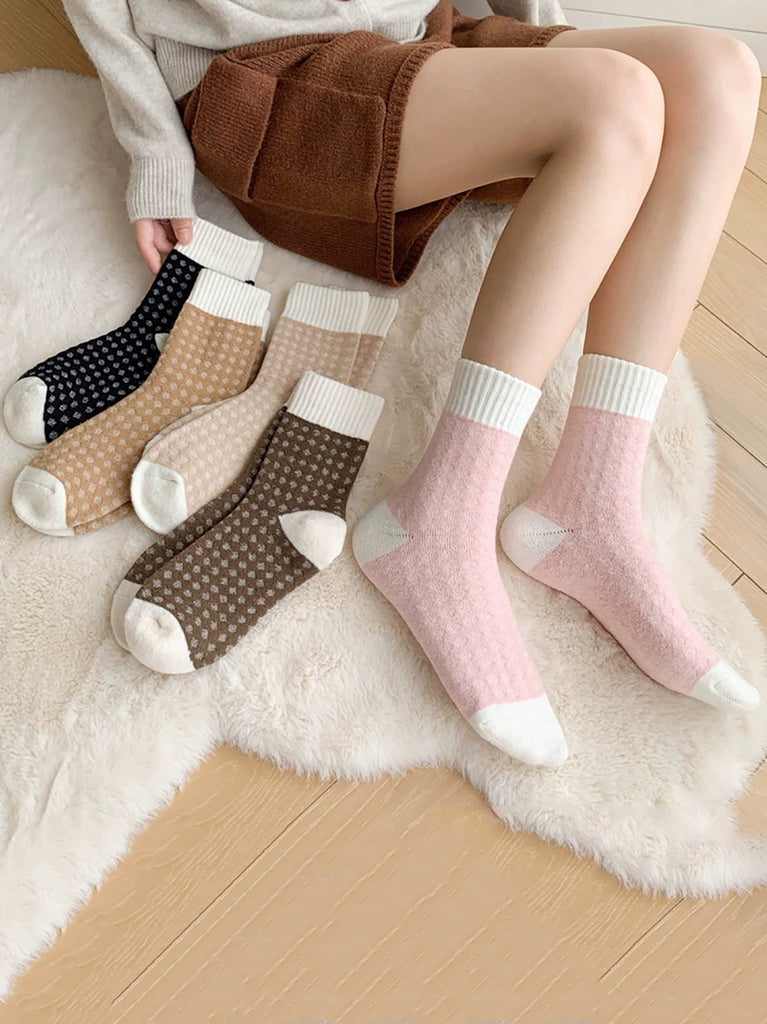 5 Pairs Women Winter Colorblock Mid-heel Socks