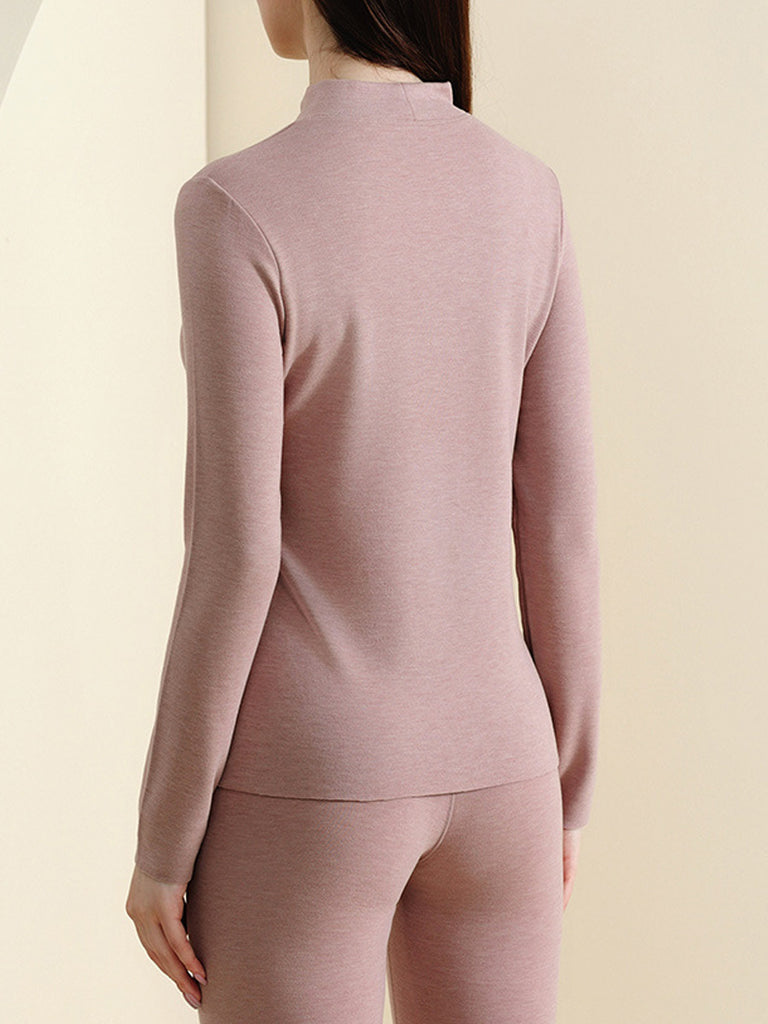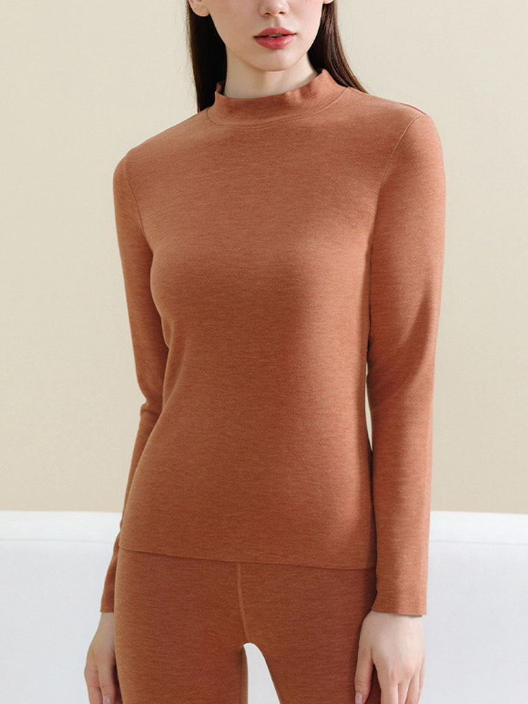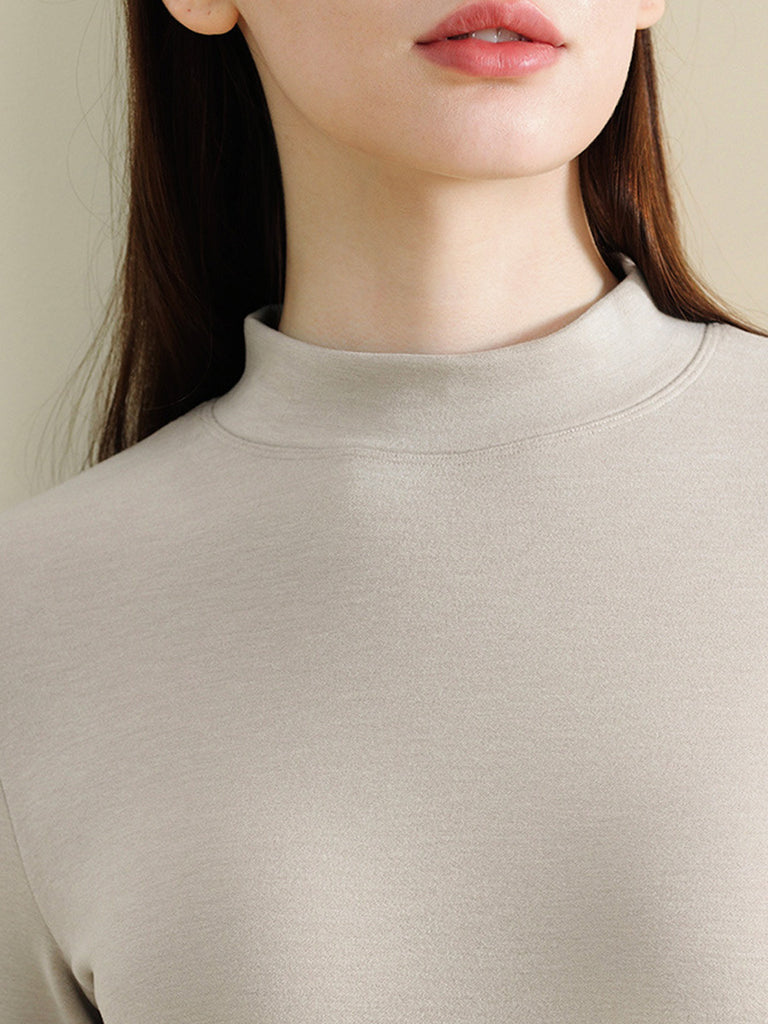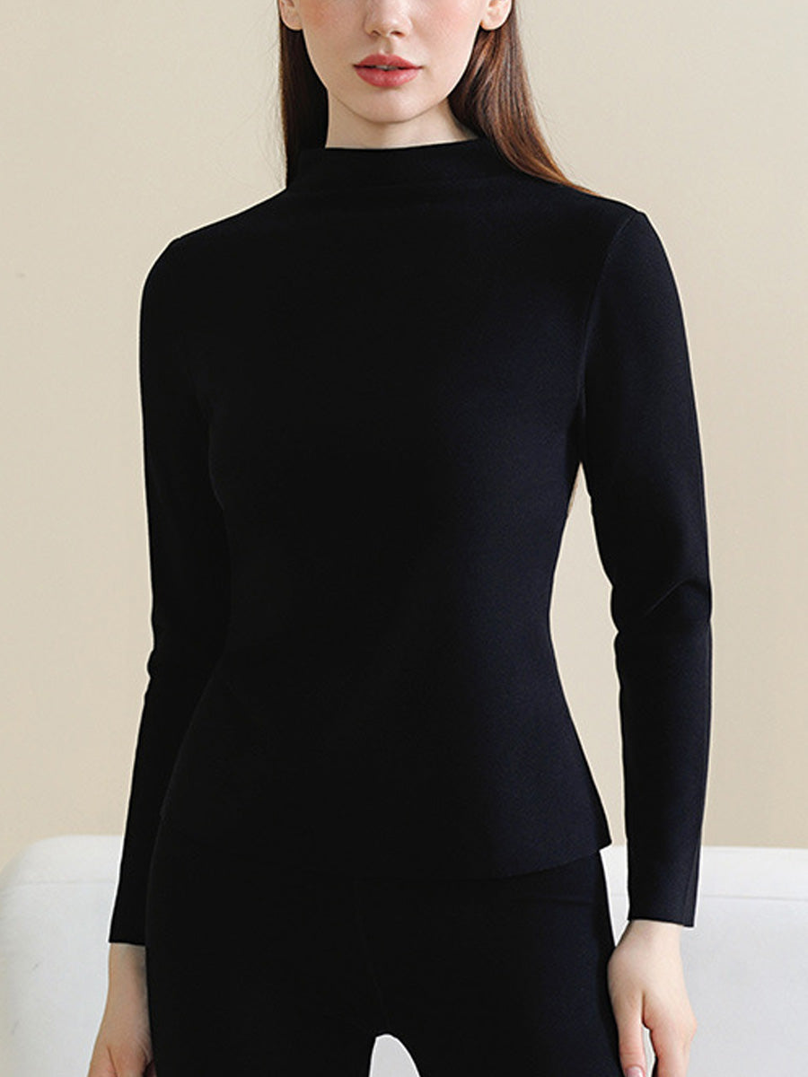 Women Autumn Pure Color Half-Turtleneck Base Blouse