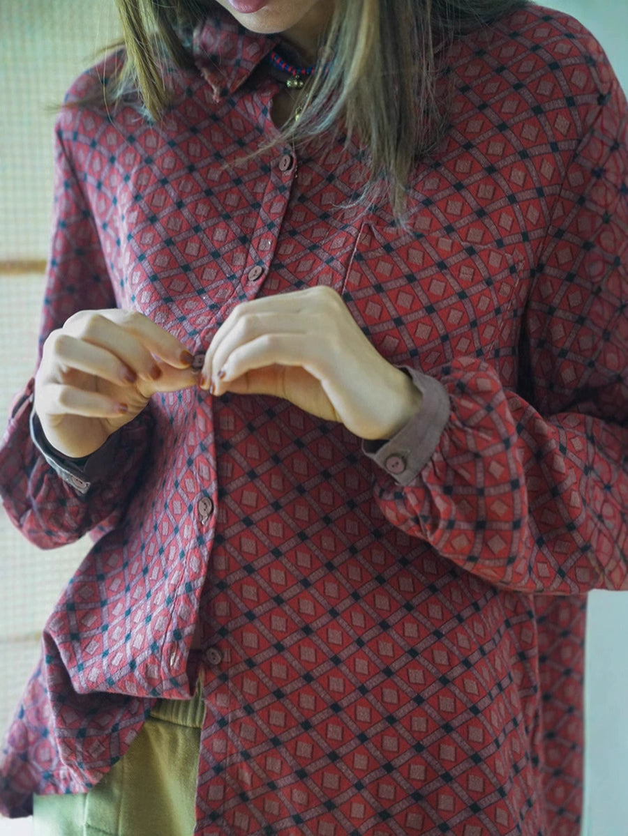 Women Artsy Spring Flower Turn-down Collar Cotton Shirt