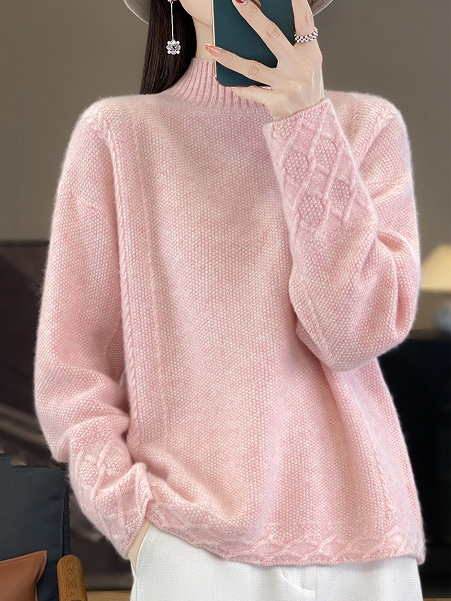 Women Autumn Artsy Pure Color Wool Half-Turtleneck Sweater