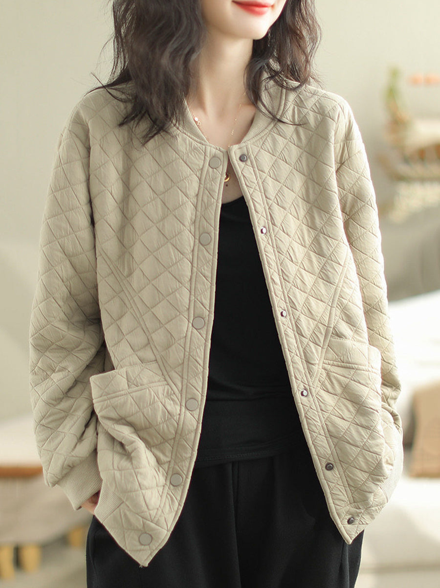 Women Winter Retro Pure Color O-Neck Padded Coat
