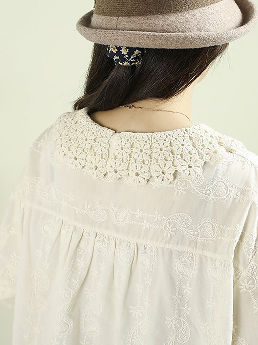 Women Artsy Autumn Embroidery 100%Cotton Shirt