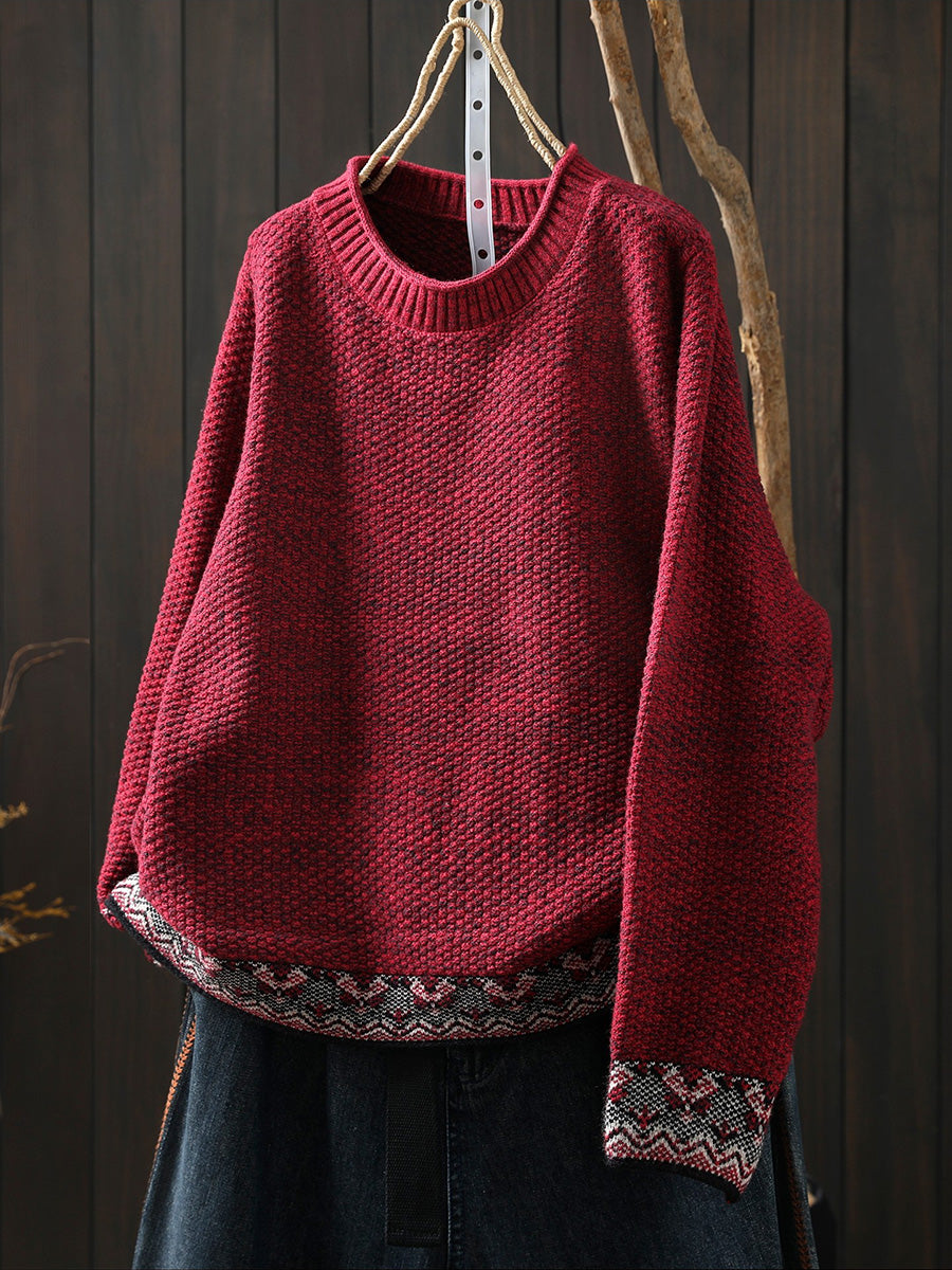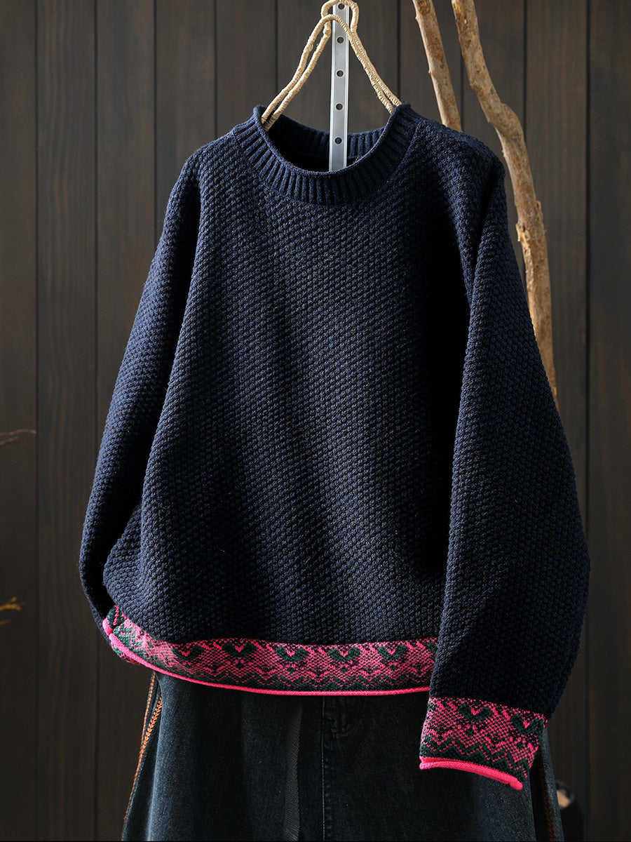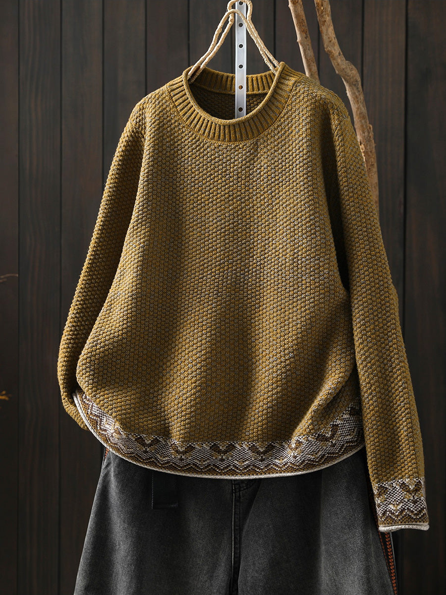 Women Winter Ethnic O-Neck Knitted Sweater
