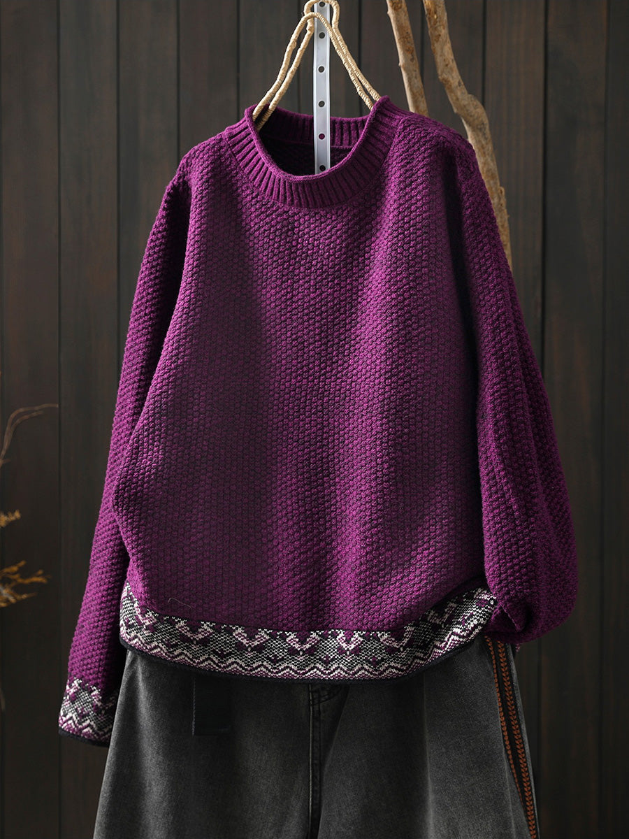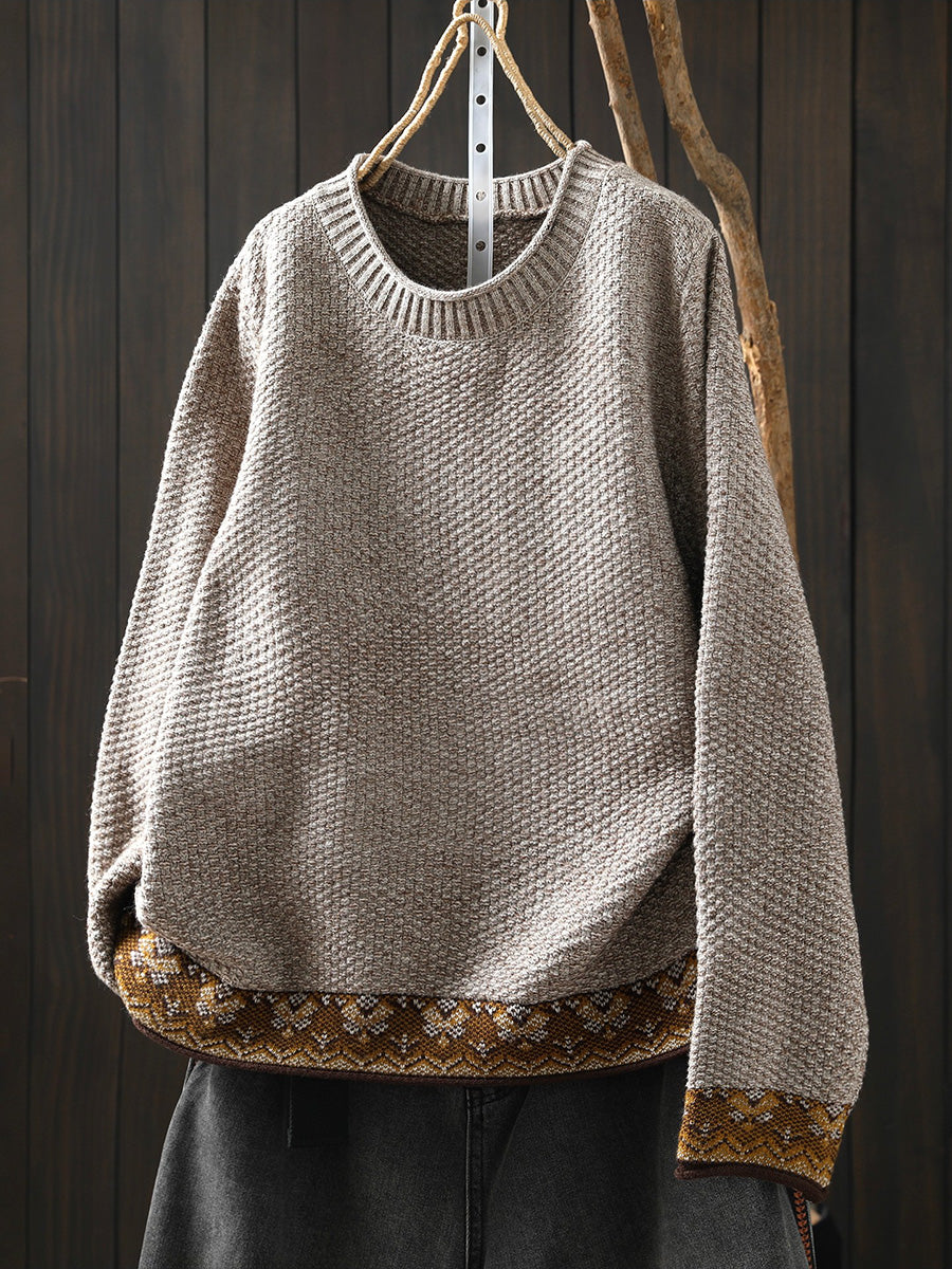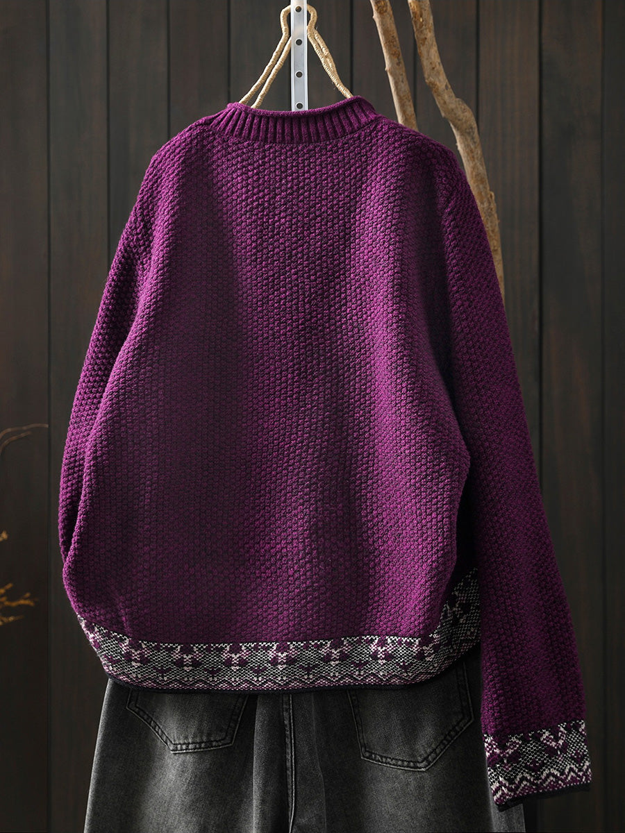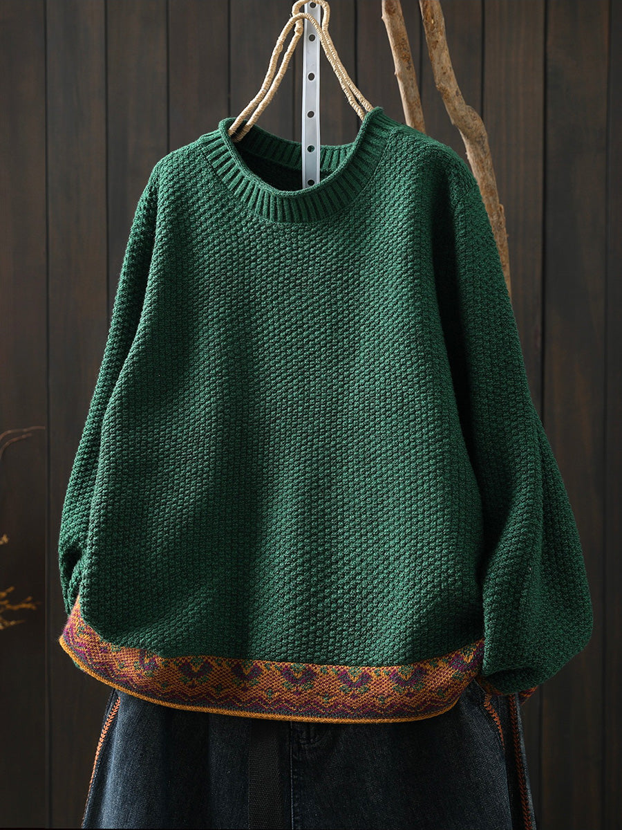 Women Winter Ethnic O-Neck Knitted Sweater