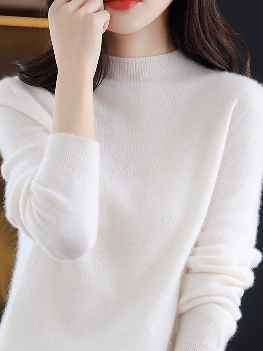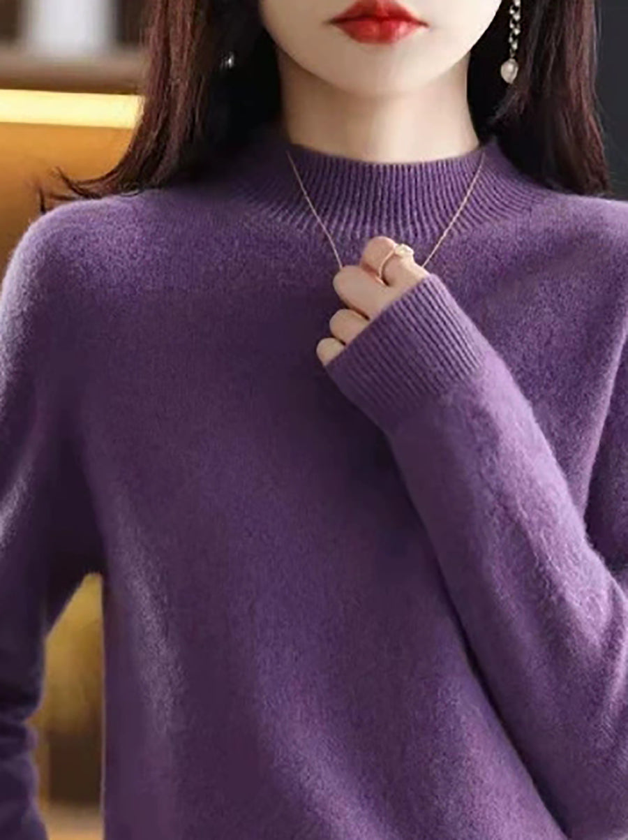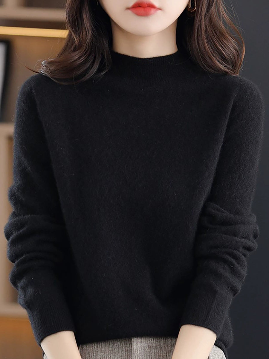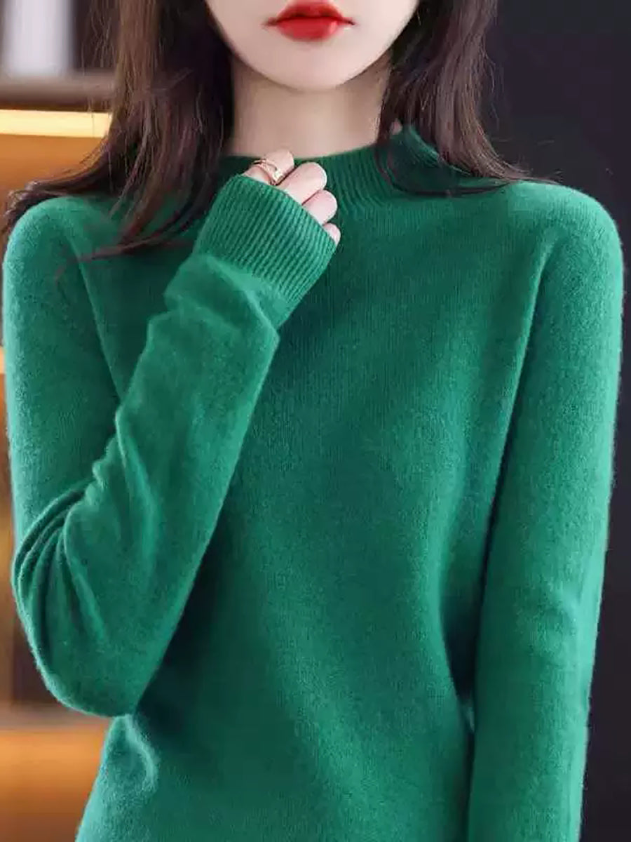 Women Winter Artsy Pure Color Half-turtleneck Sweater