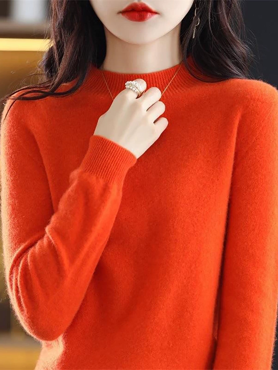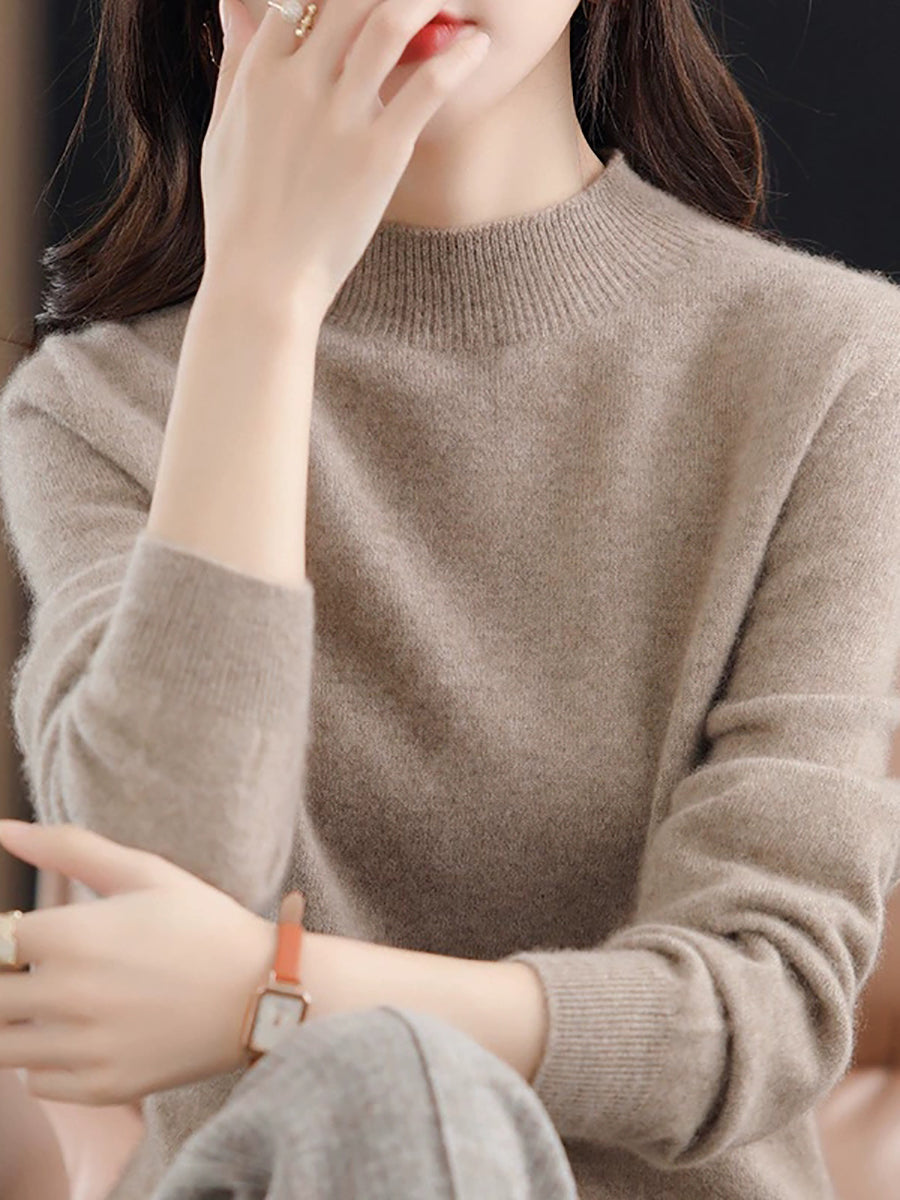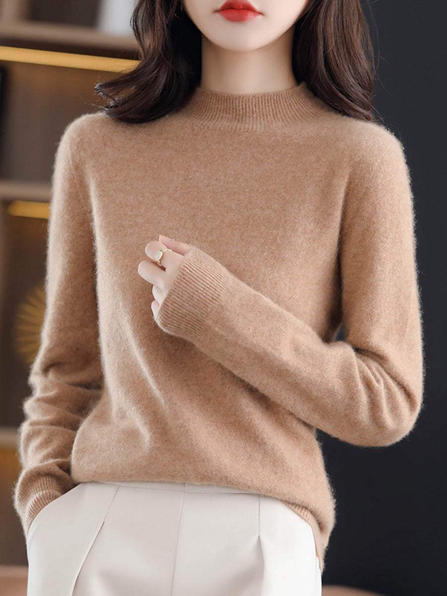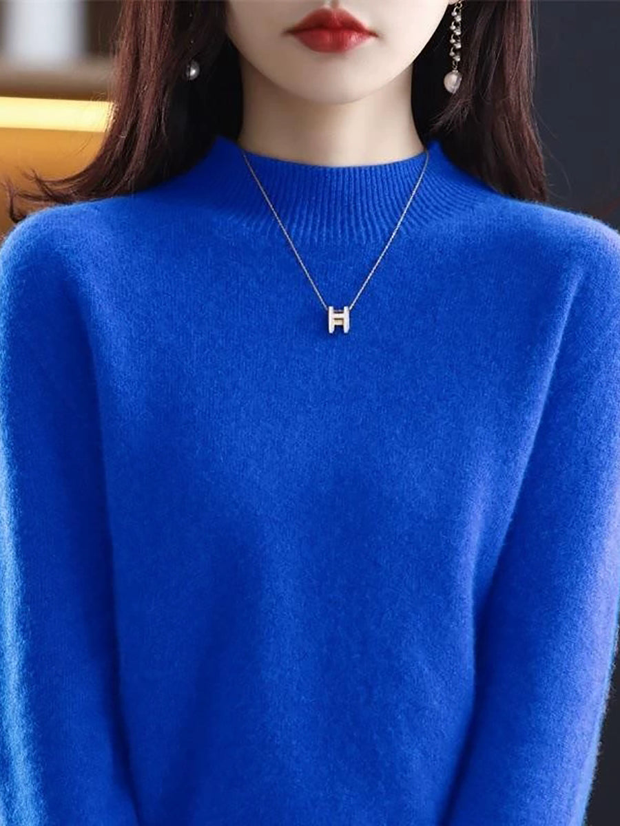 Women Winter Artsy Pure Color Half-turtleneck Sweater