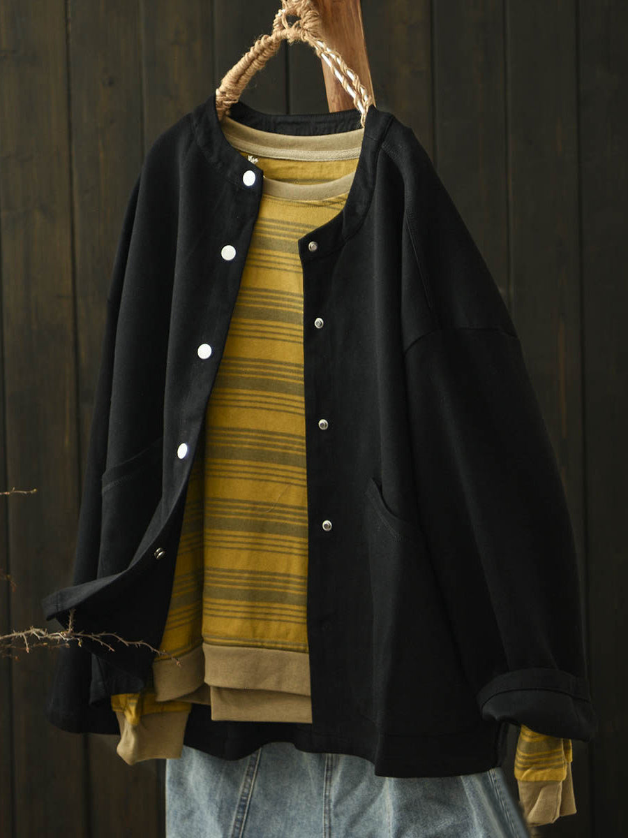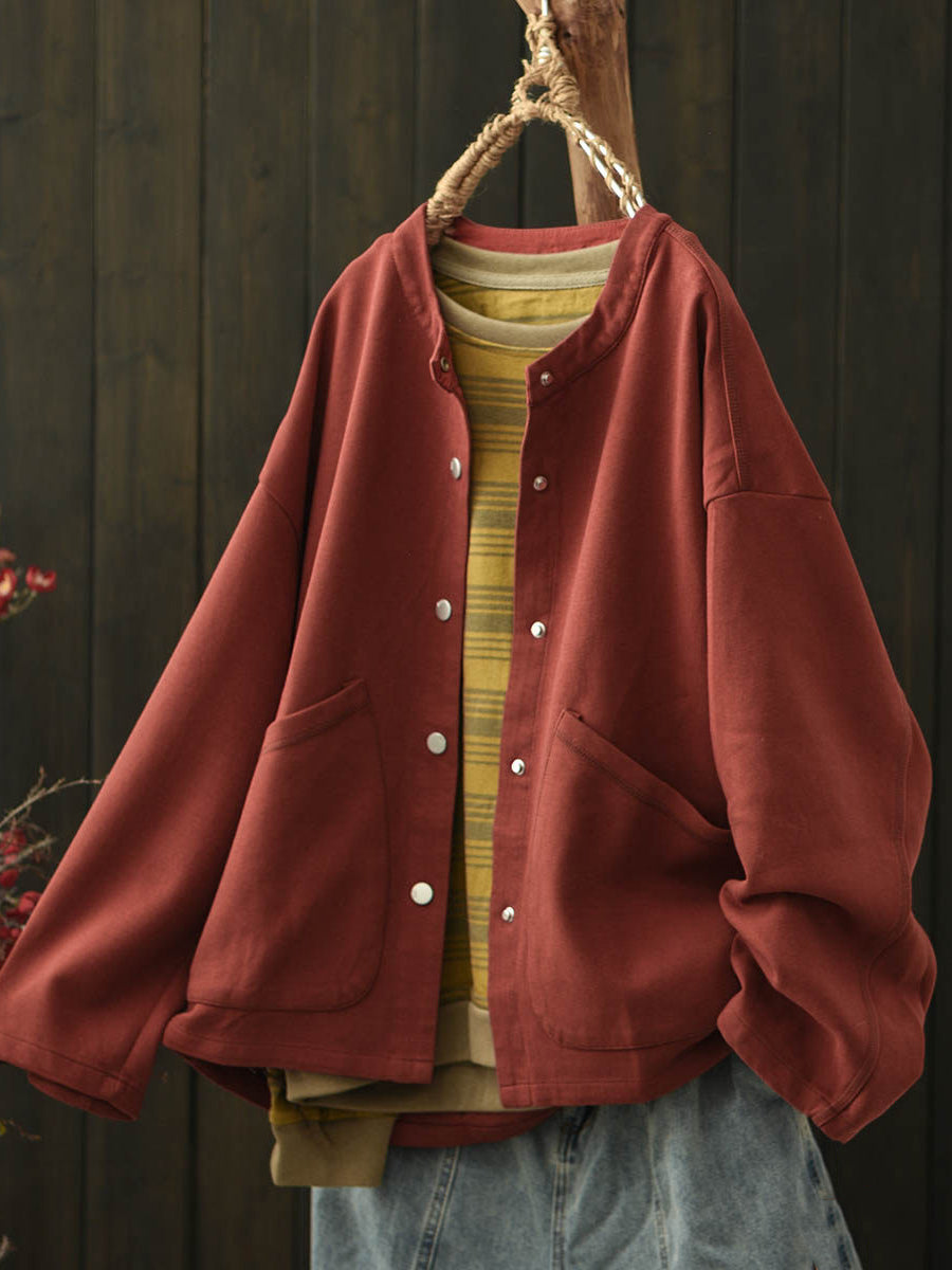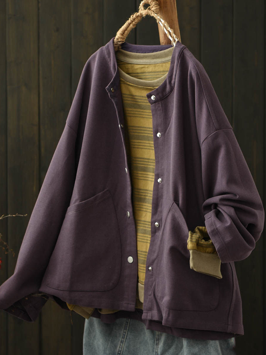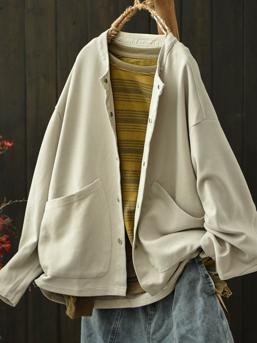 Women Spring Casual Pure Color O-Neck Coat