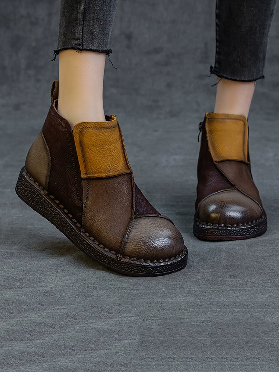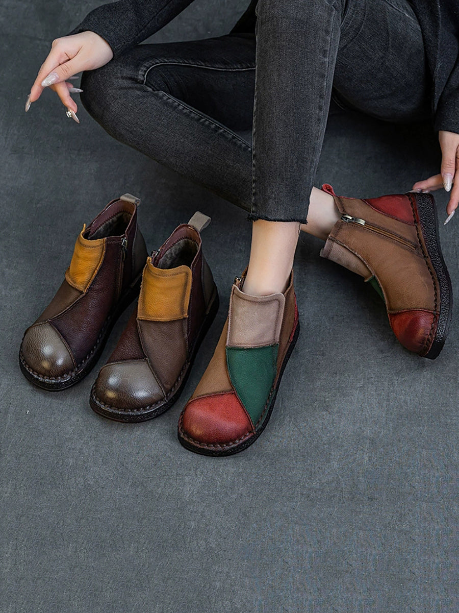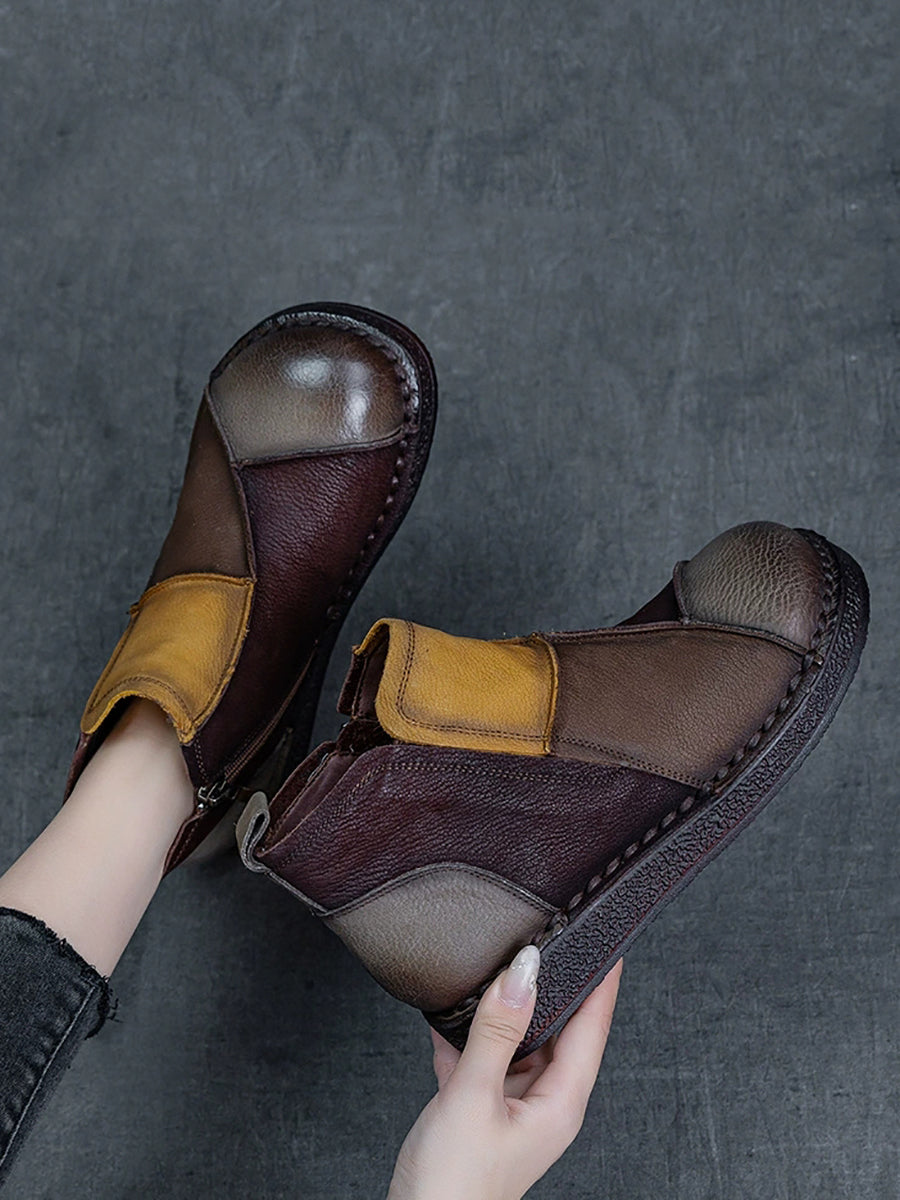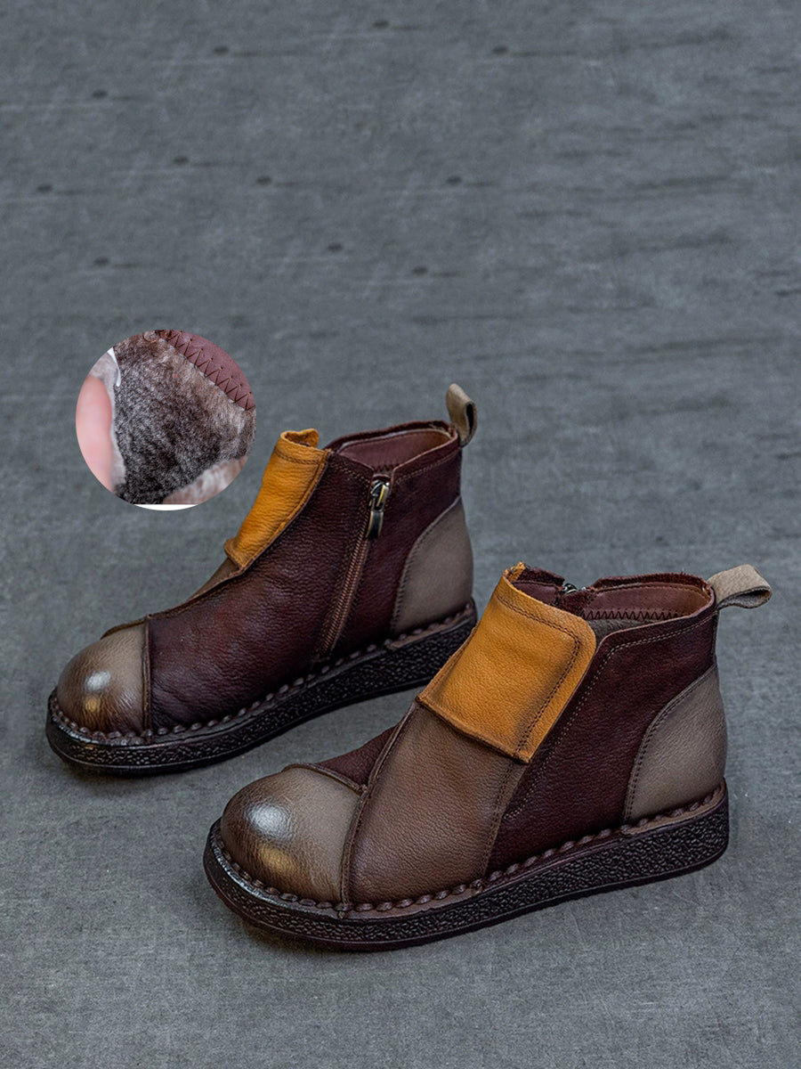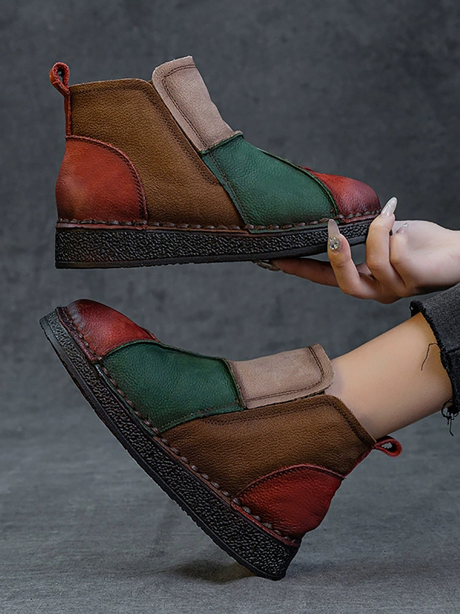 Women Winter Colorblock Genuine Leather Ankle Boots