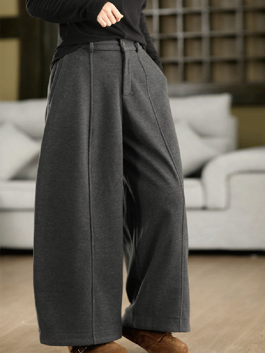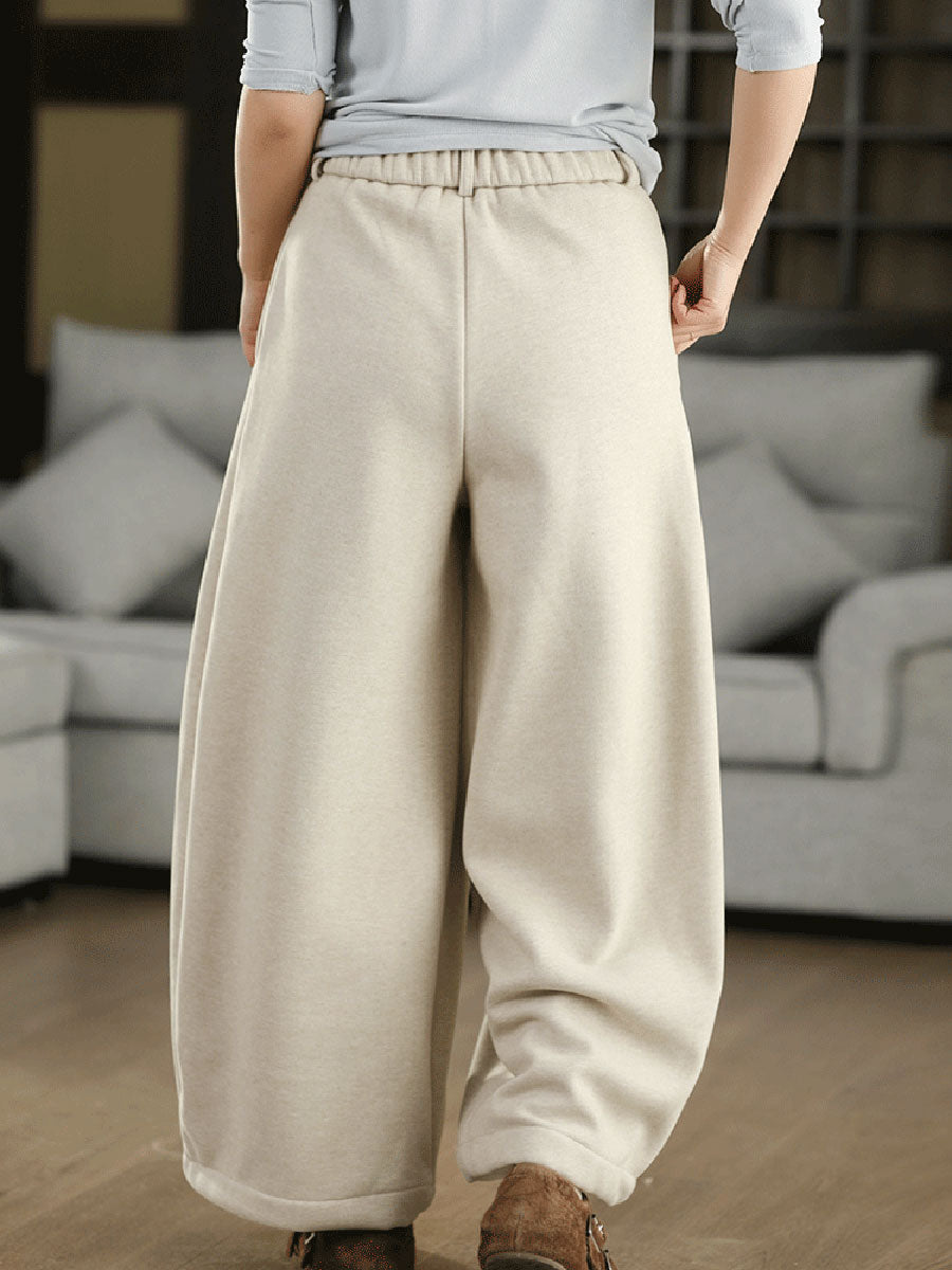 Women Winter Casual Pure Color Fleece-lined Wide-leg Pants