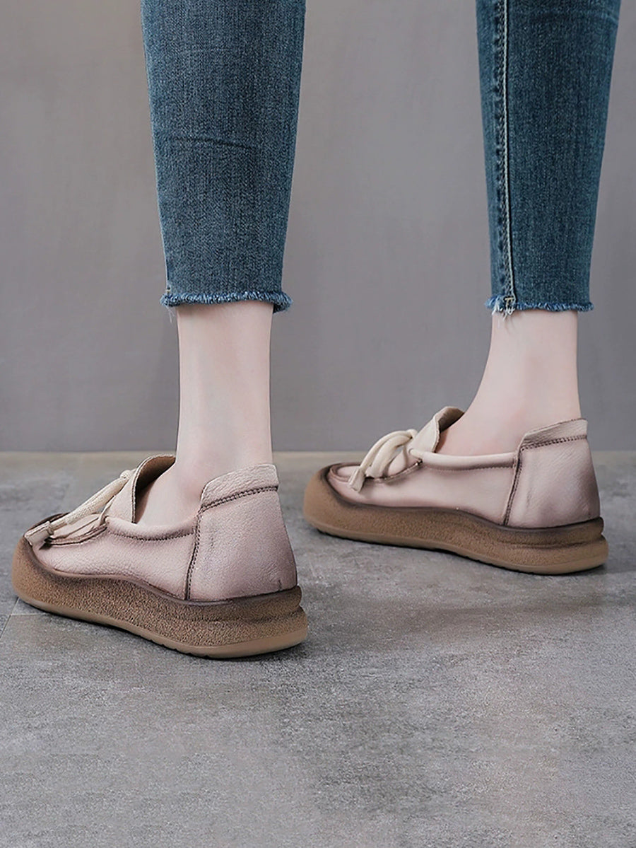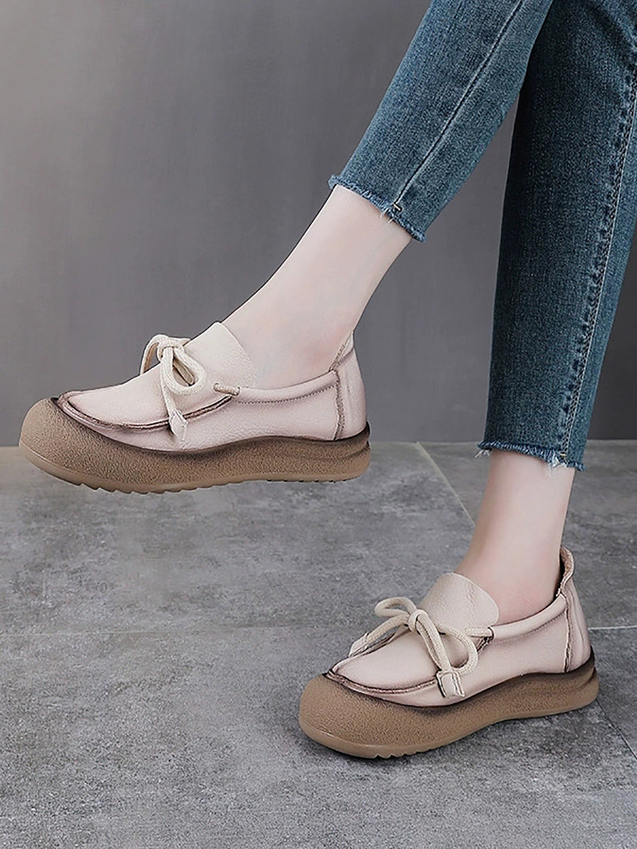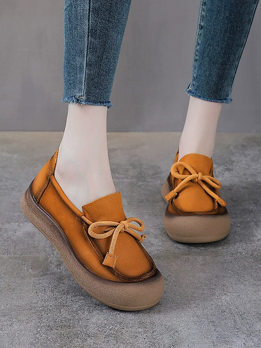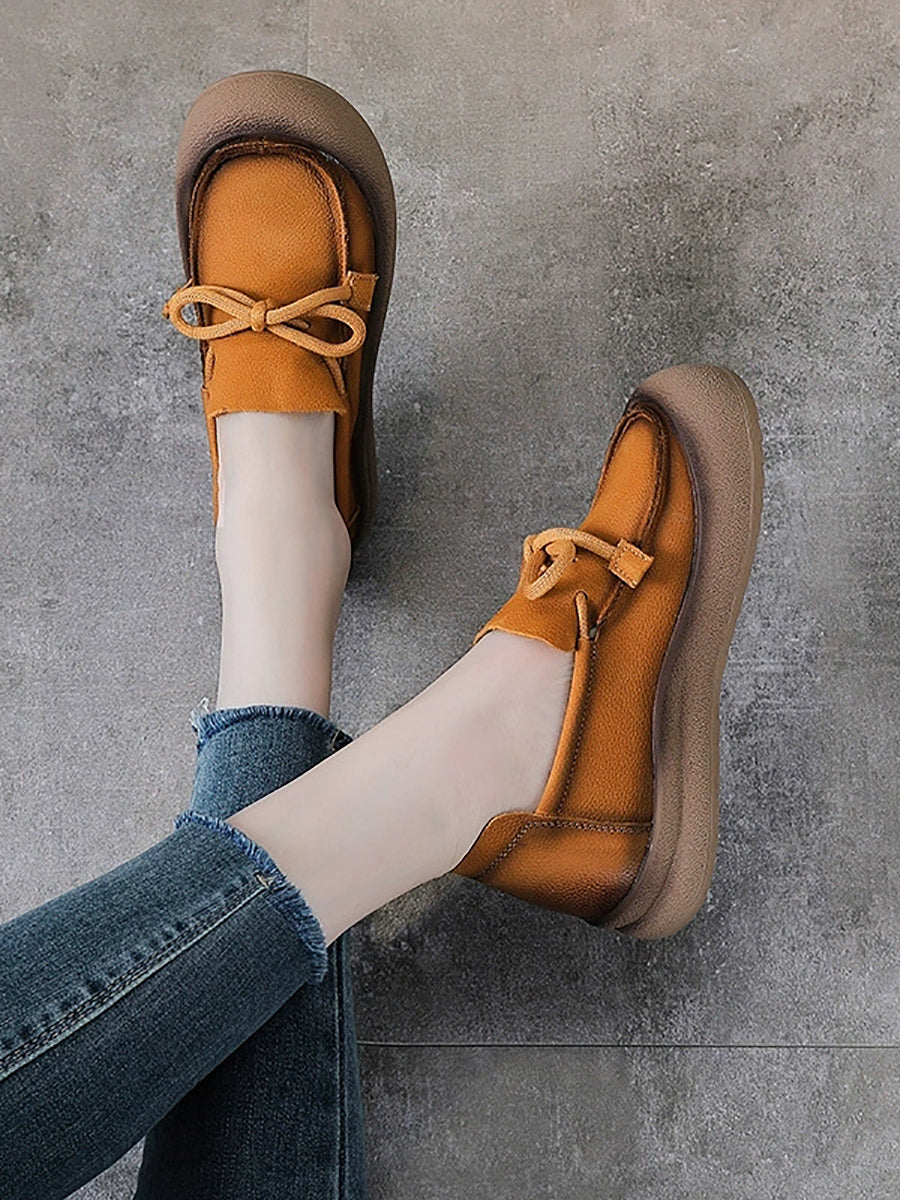 Women Vintage Genuine Leather Bowknot Flat Shoes