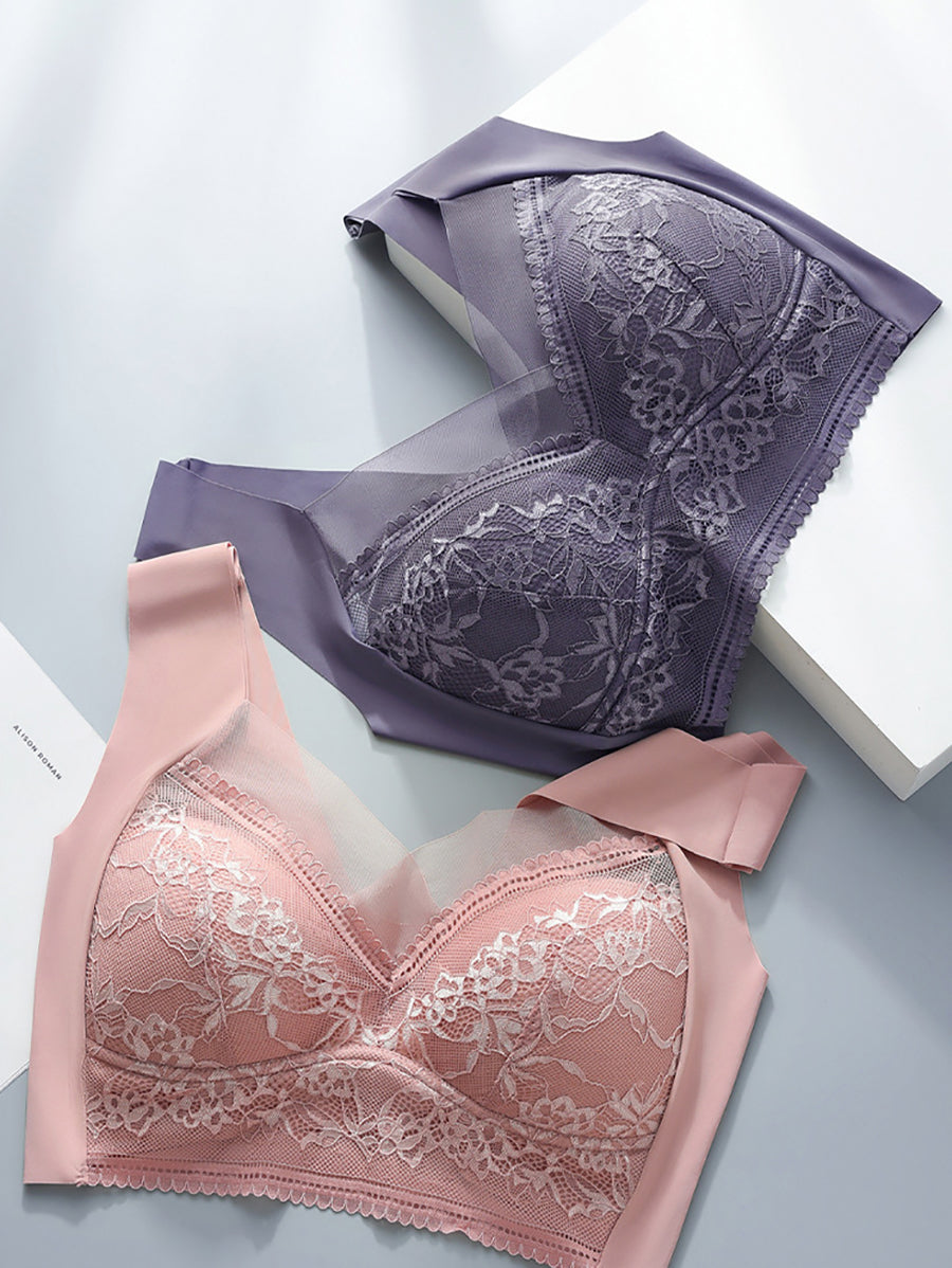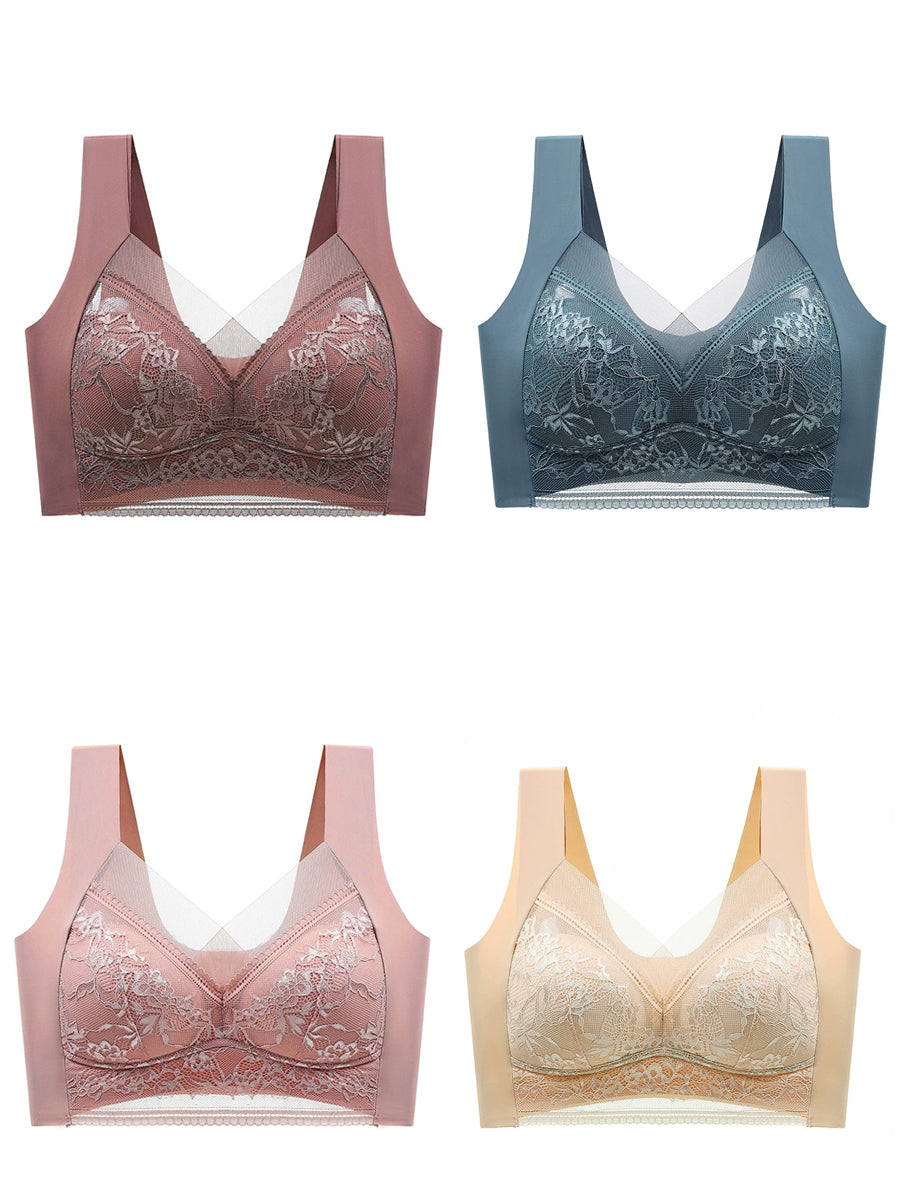 4 Pieces Women Artsy Lace One-piece Wireless Bra