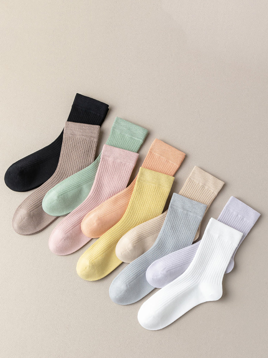 6 Pairs Women Spring Pure Color Socks