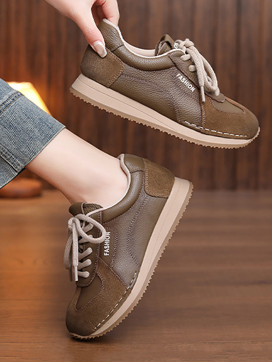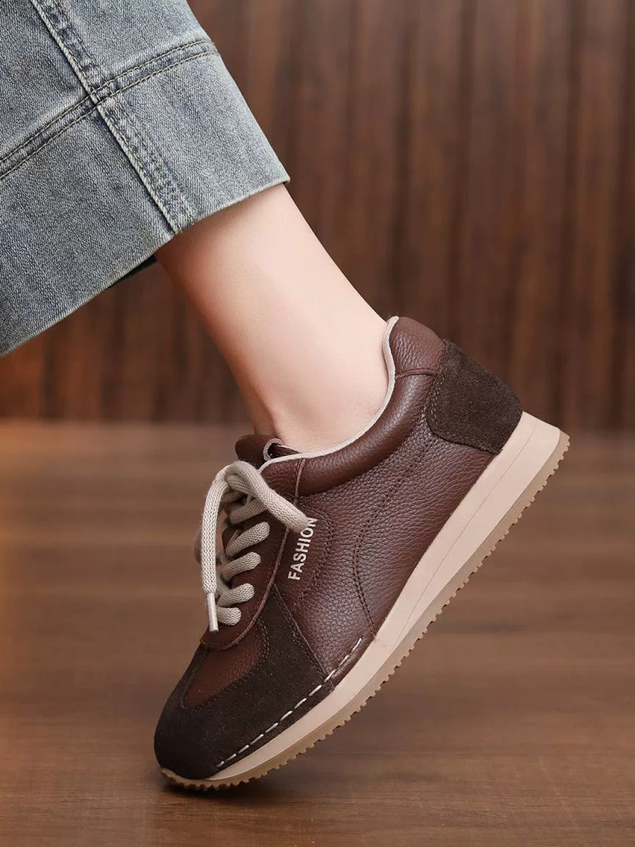 Women Spring Genuine Leather Spliced Sport Shoes