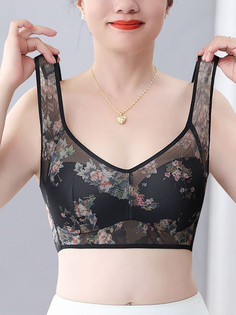 3 Pieces Women Artsy Flower One-piece Flower Bra