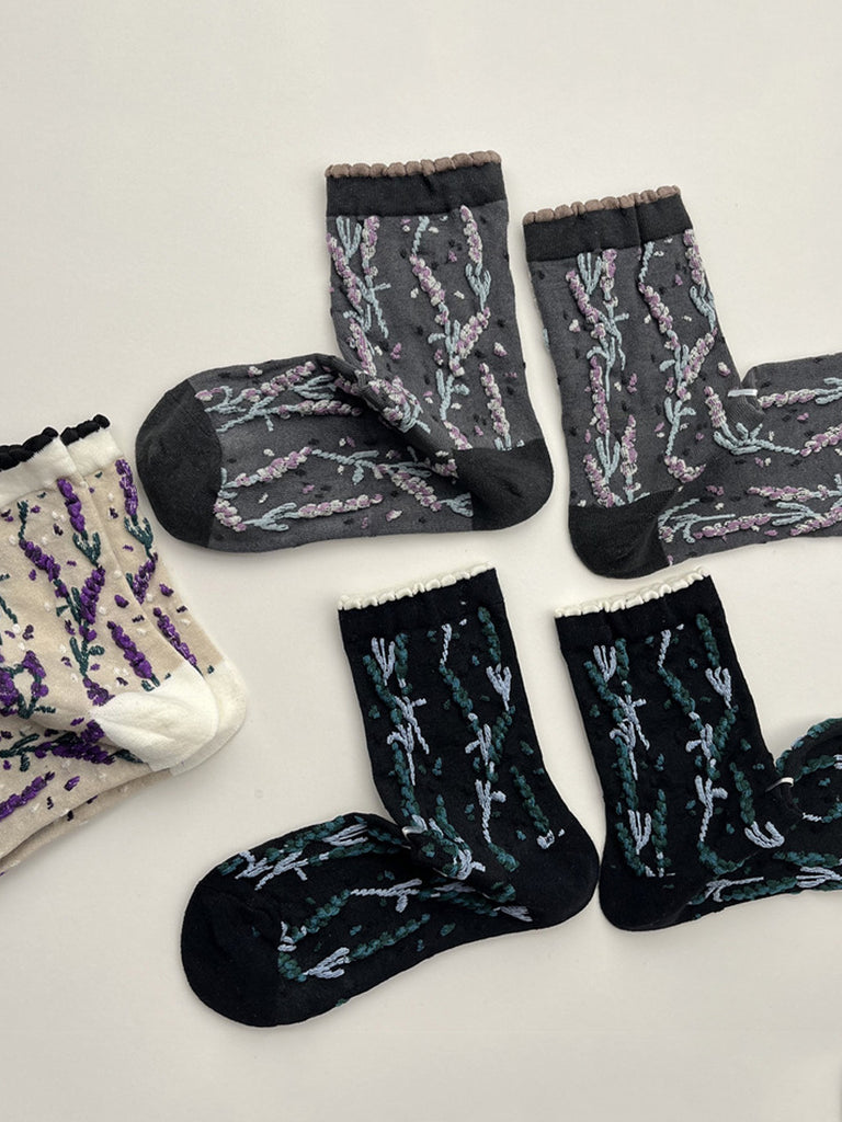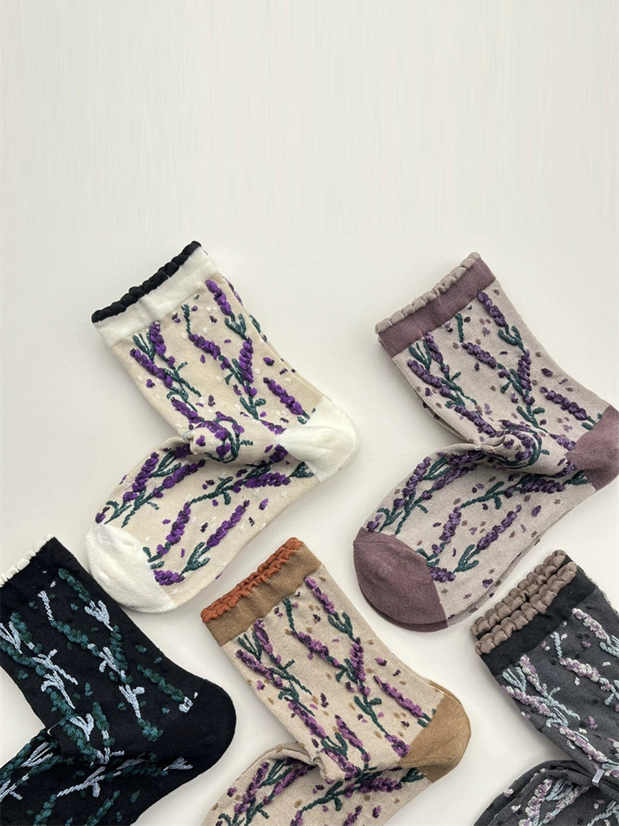 5 Pairs Women Winter Flower Jacquard Cotton Socks