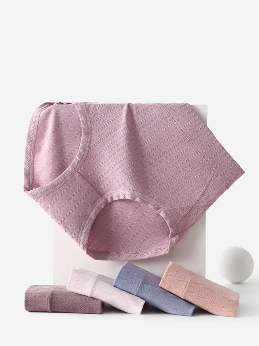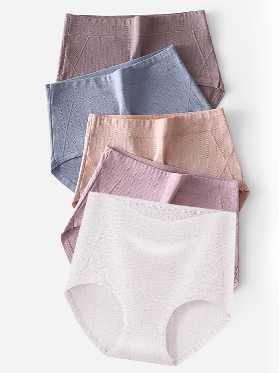 5 Pieces Women Casual Pure Color High Waist Underwear