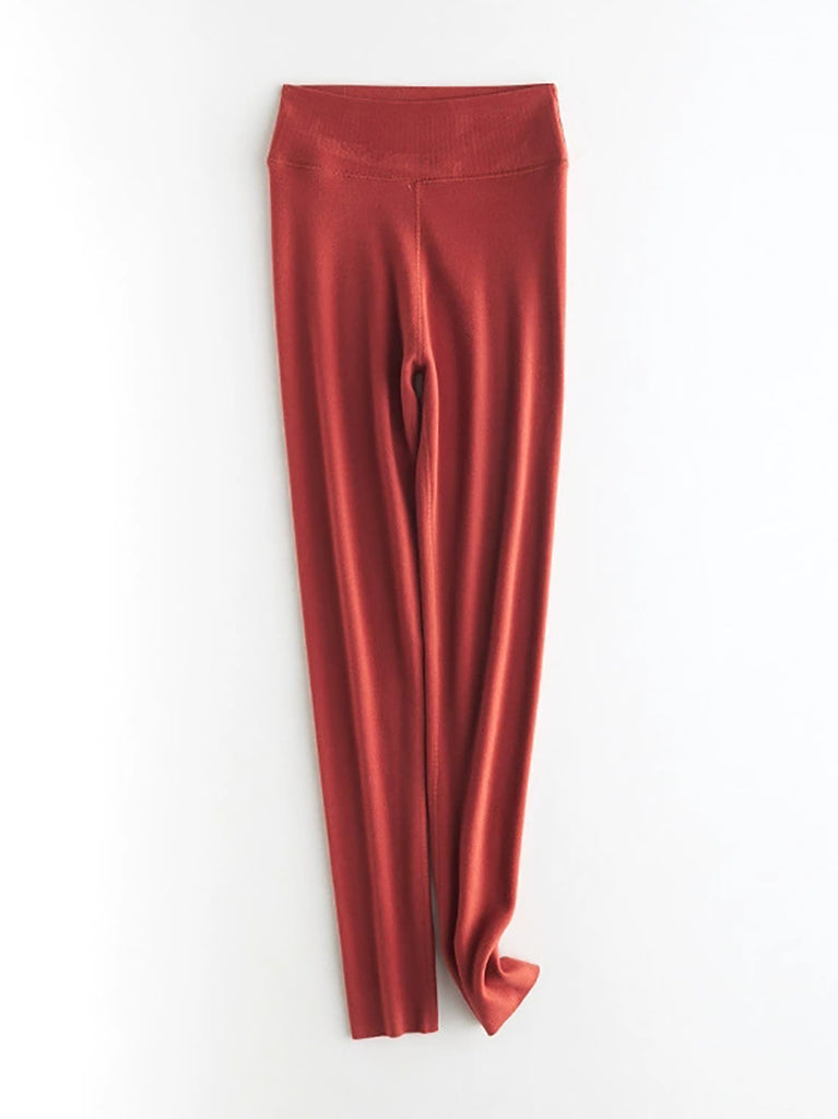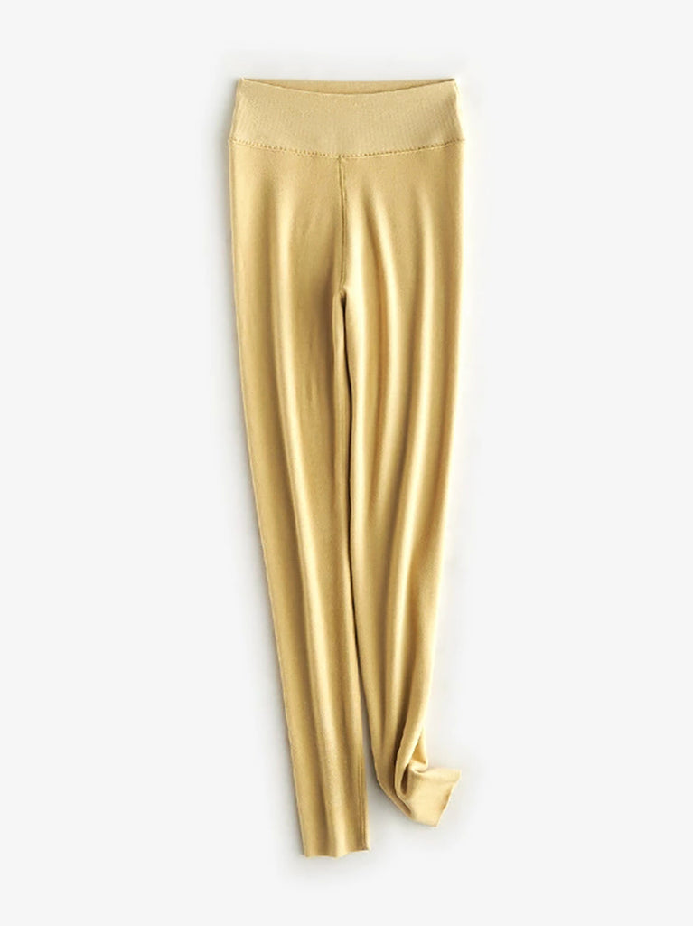 Women Autumn Warm Pure Color High Waist Leggings