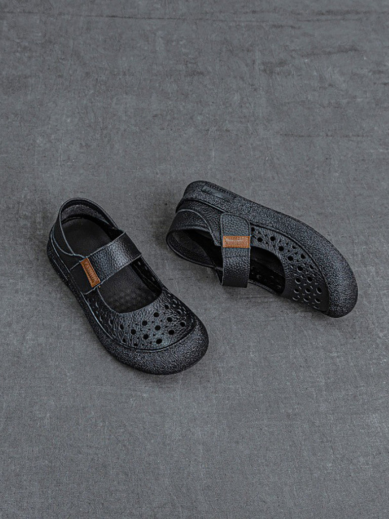 Women Vintage Summer Leather Hollow Out Flat Shoes
