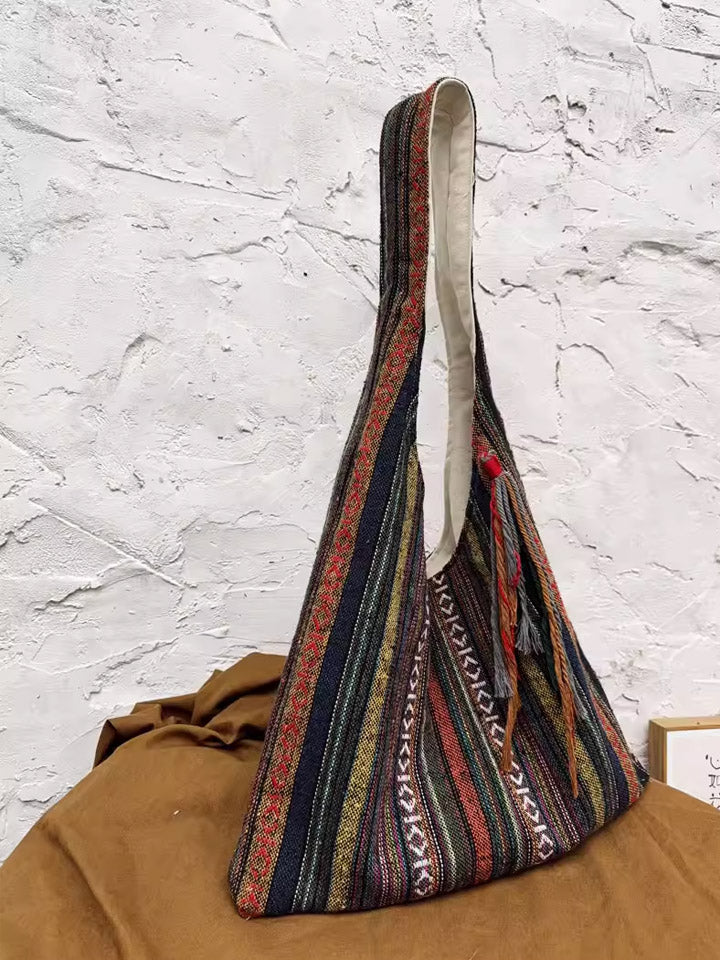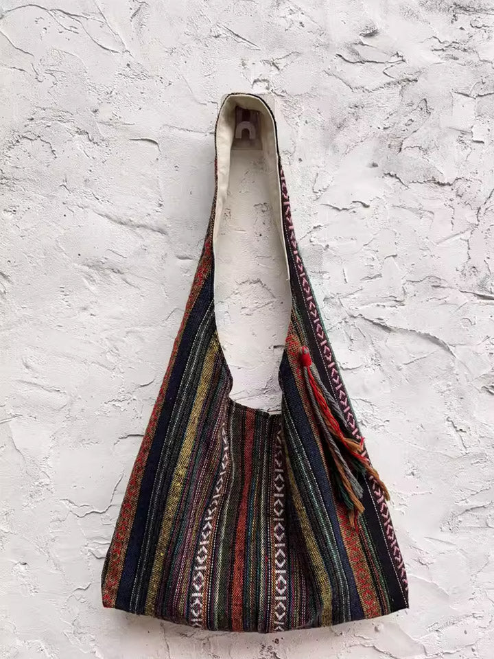 Ethnic Color-Blocking Stripe Shoulder Bag