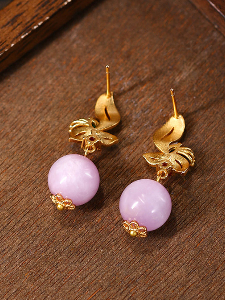 Ethnic Purple Lithium Crystal Butterfly Earrings