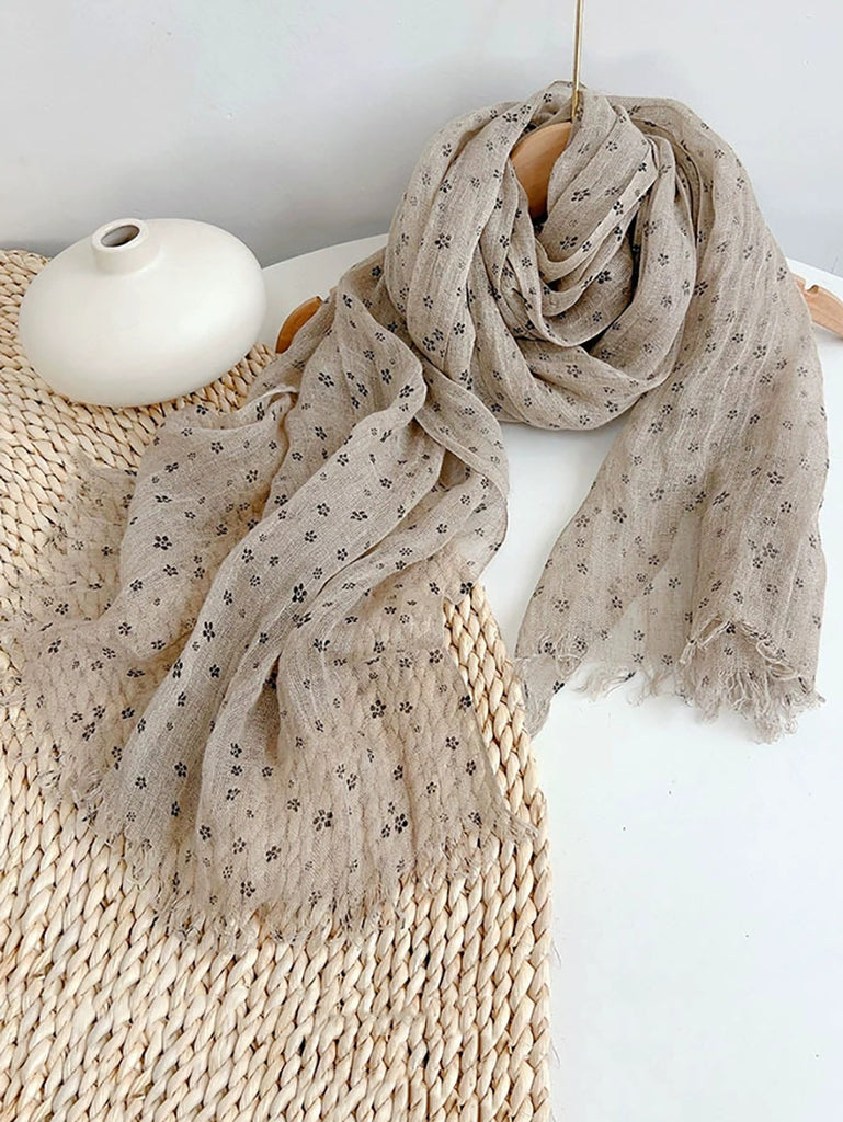 Women Artsy Floral Thin Tassel Linen Shawl Scarf