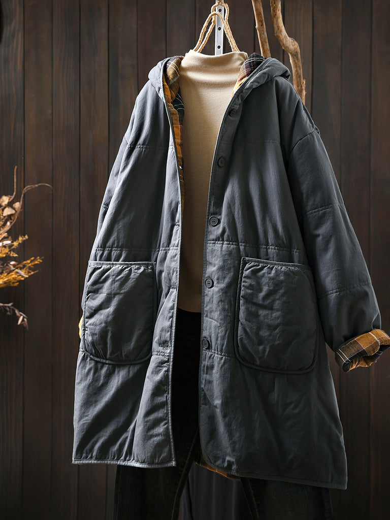 Women Autumn Casual Pure Color Hooded Padded Coat