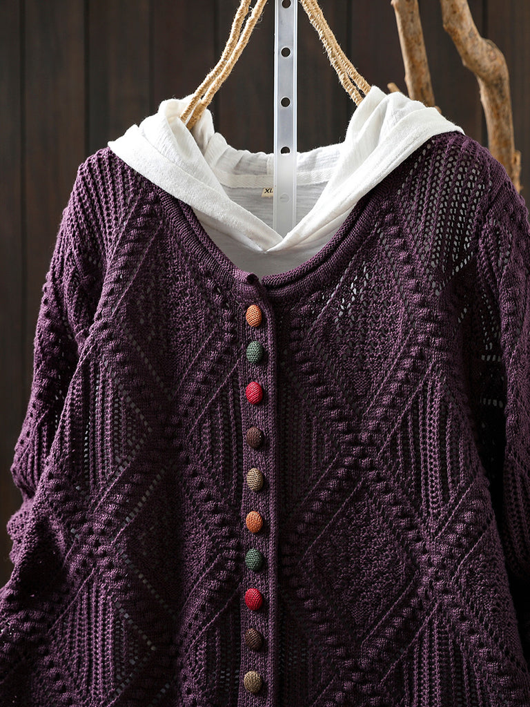 Women Autumn Vintage Rhomboids Knitted O-Neck Sweater