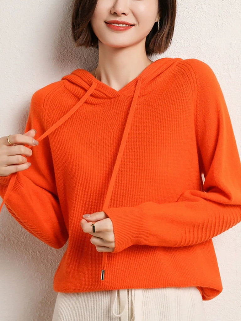 This versatile hooded knitted sweater combines timeless elegance with practical comfort for the cooler months. Featuring a clean, solid-color design and relaxed raglan sleeves, it delivers an effortlessly casual aesthetic suitable for autumn and winter wear. The full-length sleeves and cozy hood provide warmth and coverage, while the refined silhouette ensures a flattering fit for everyday styling. Perfect for layering or wearing standalone, this piece transitions seamlessly from casual outings to relaxed indoor settings.