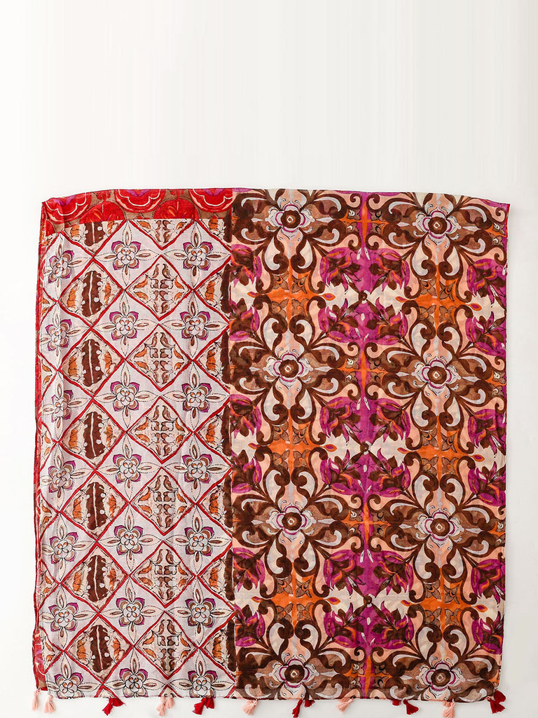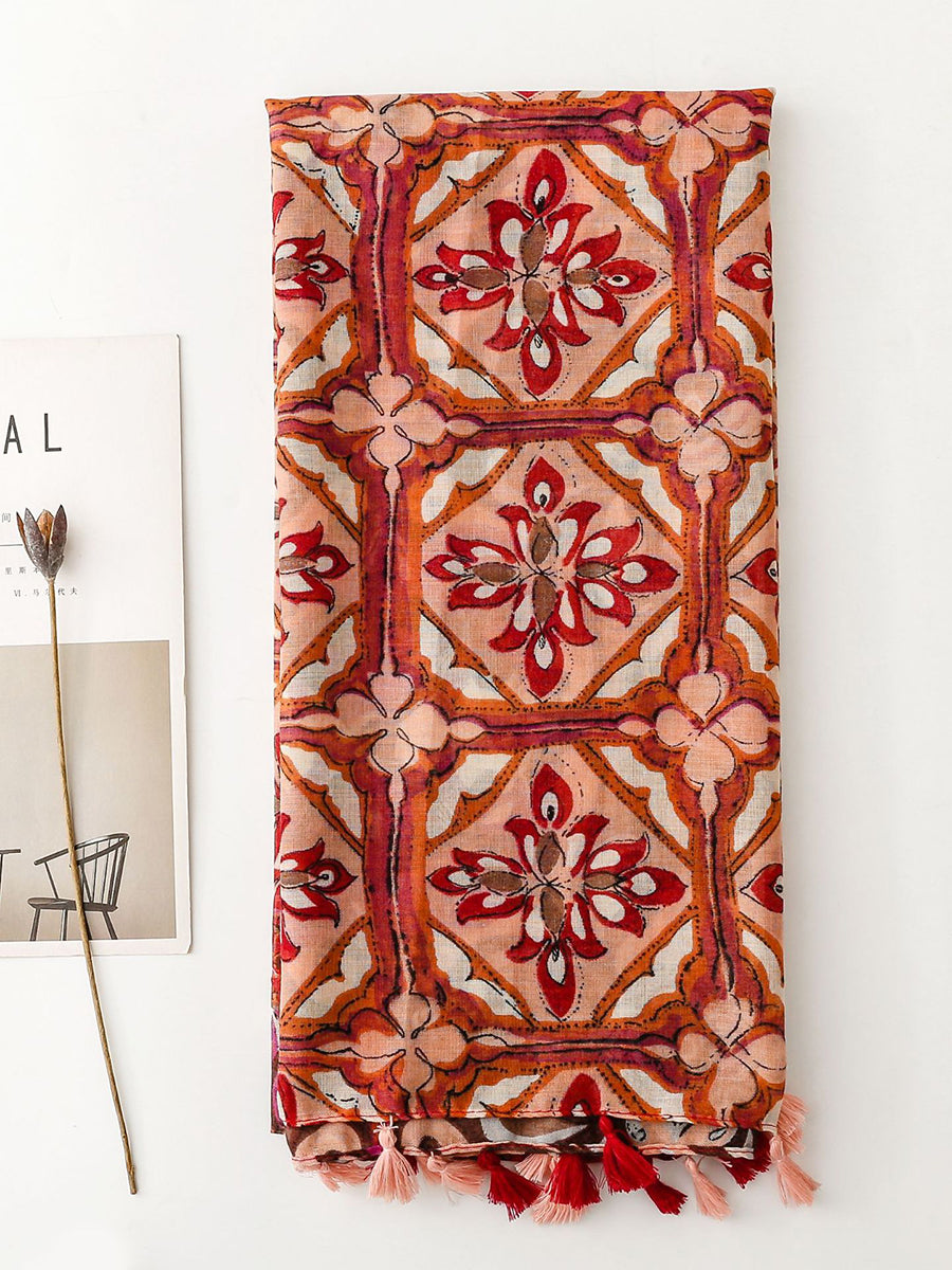 Women Ethnic Flower Spliced Tassel Shawl Scarf