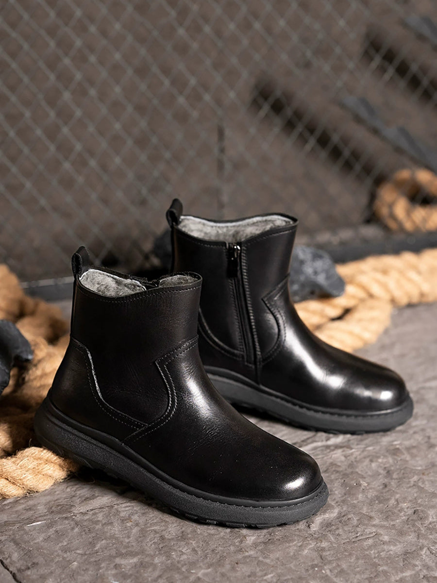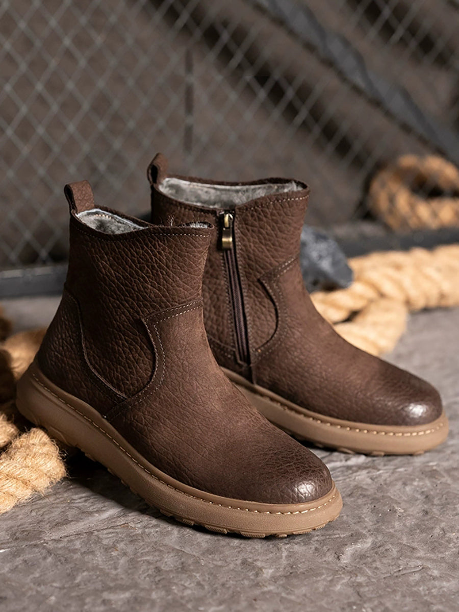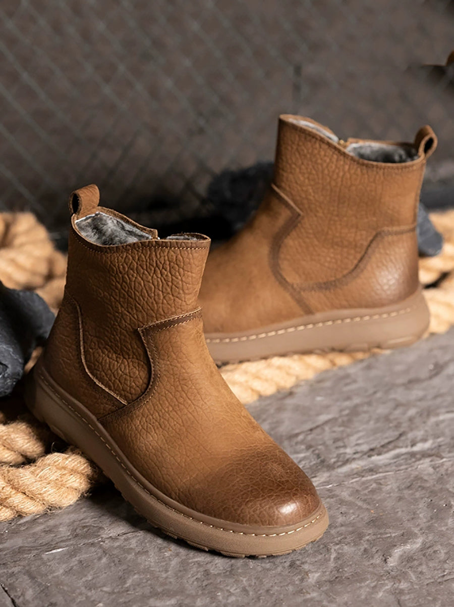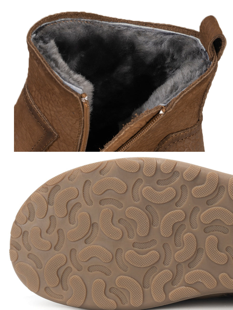 Women Winter Genuine Leather Fleece-lined Martin Boots