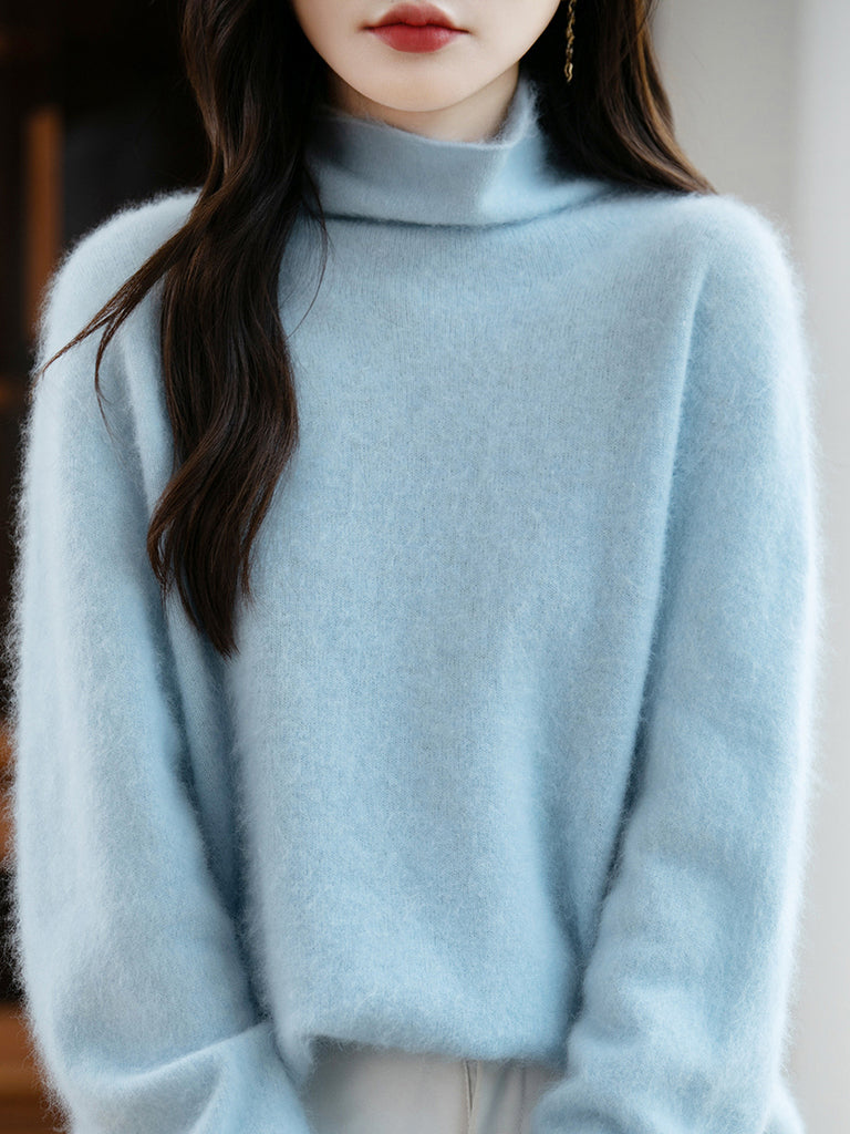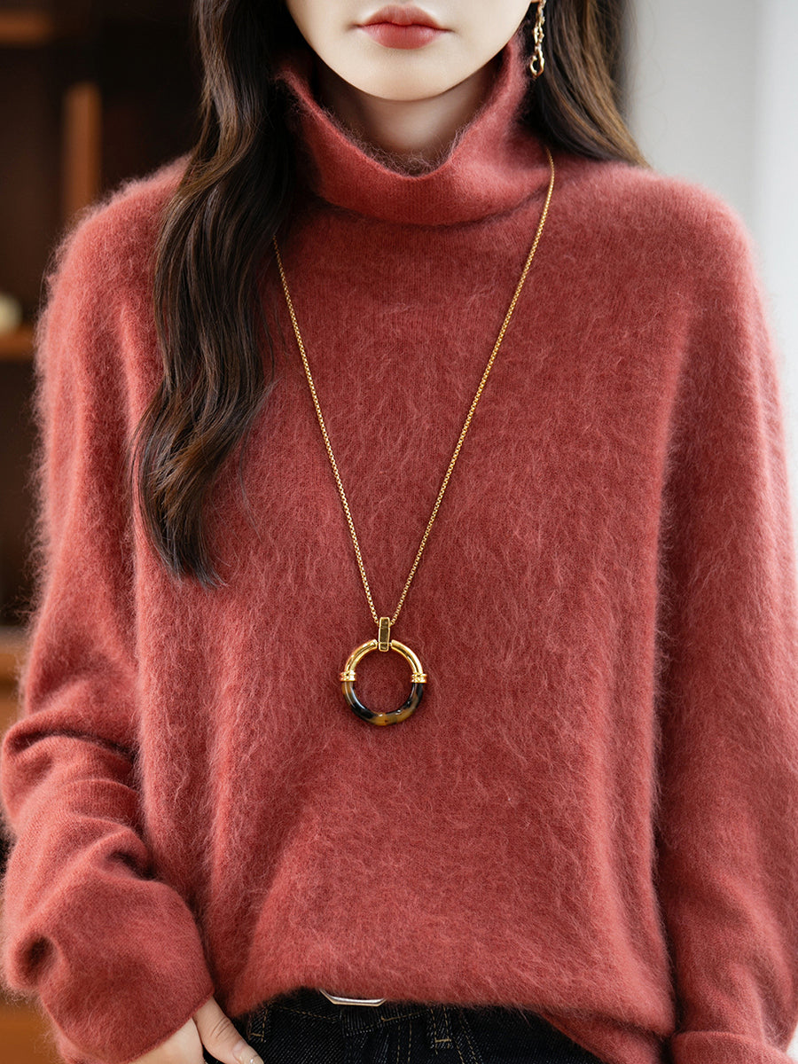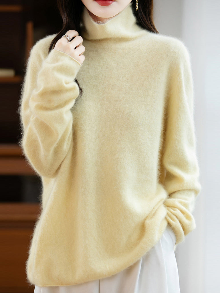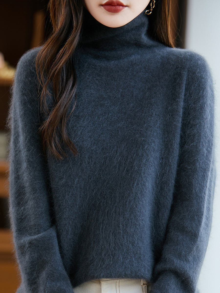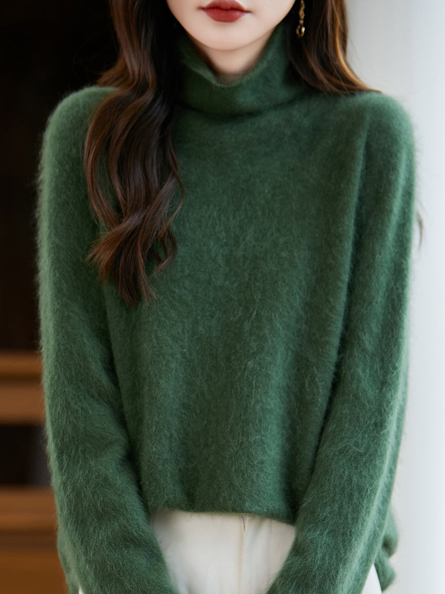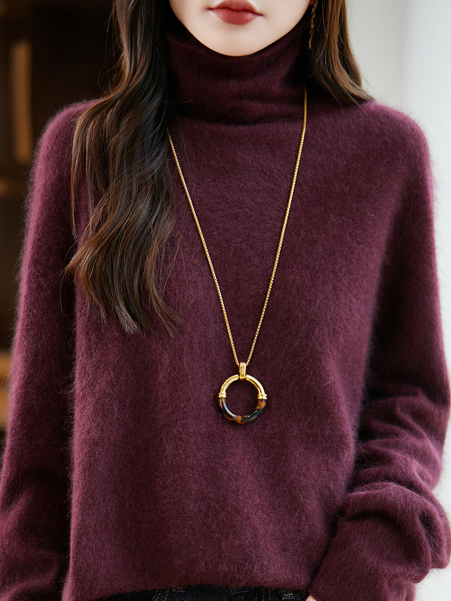 Women Winter Pure Color Turtleneck Wool Sweater