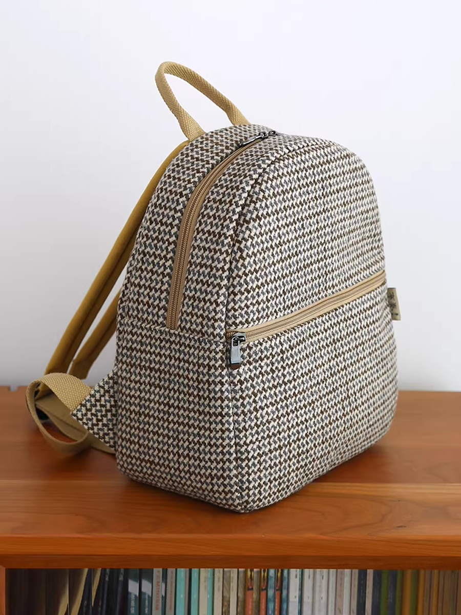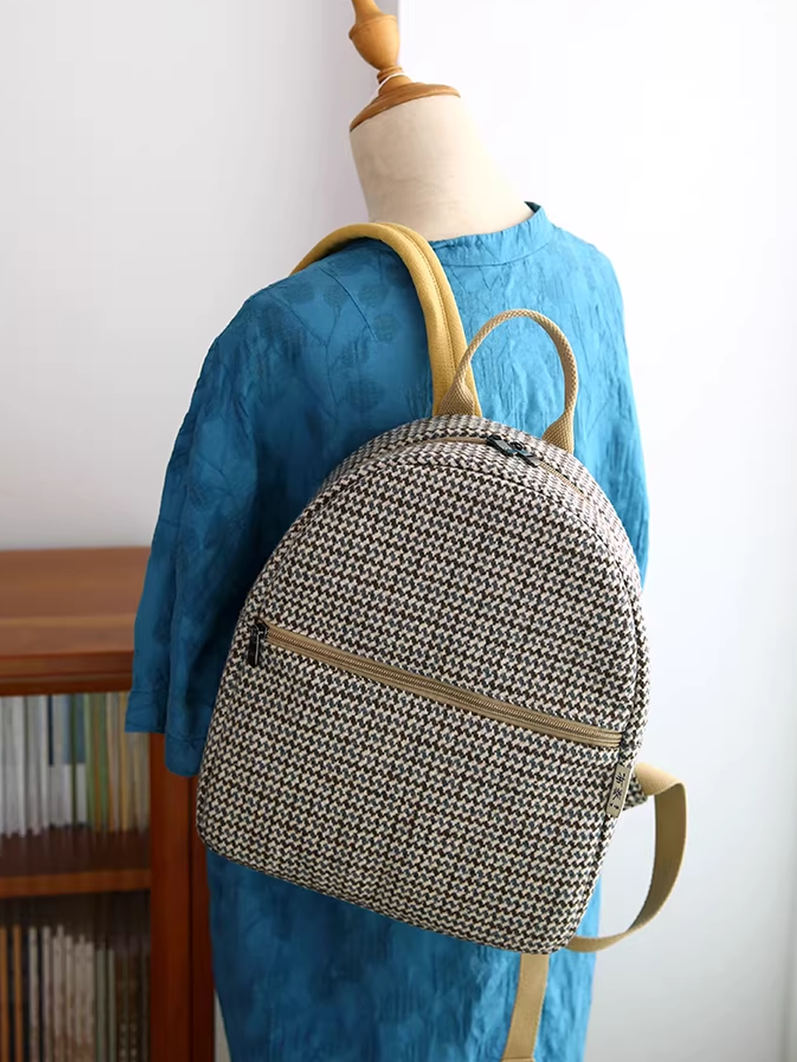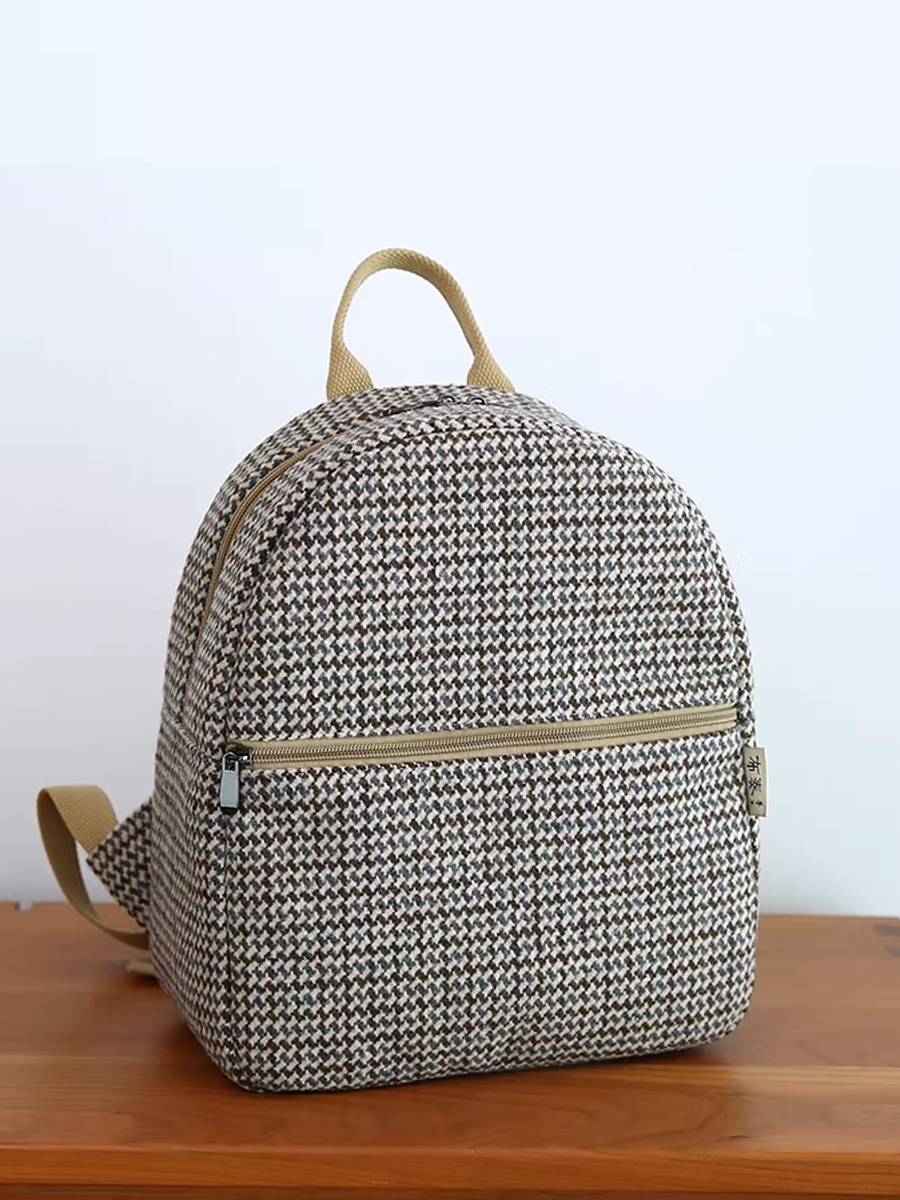 Retro Houndstooth Linen Backpack