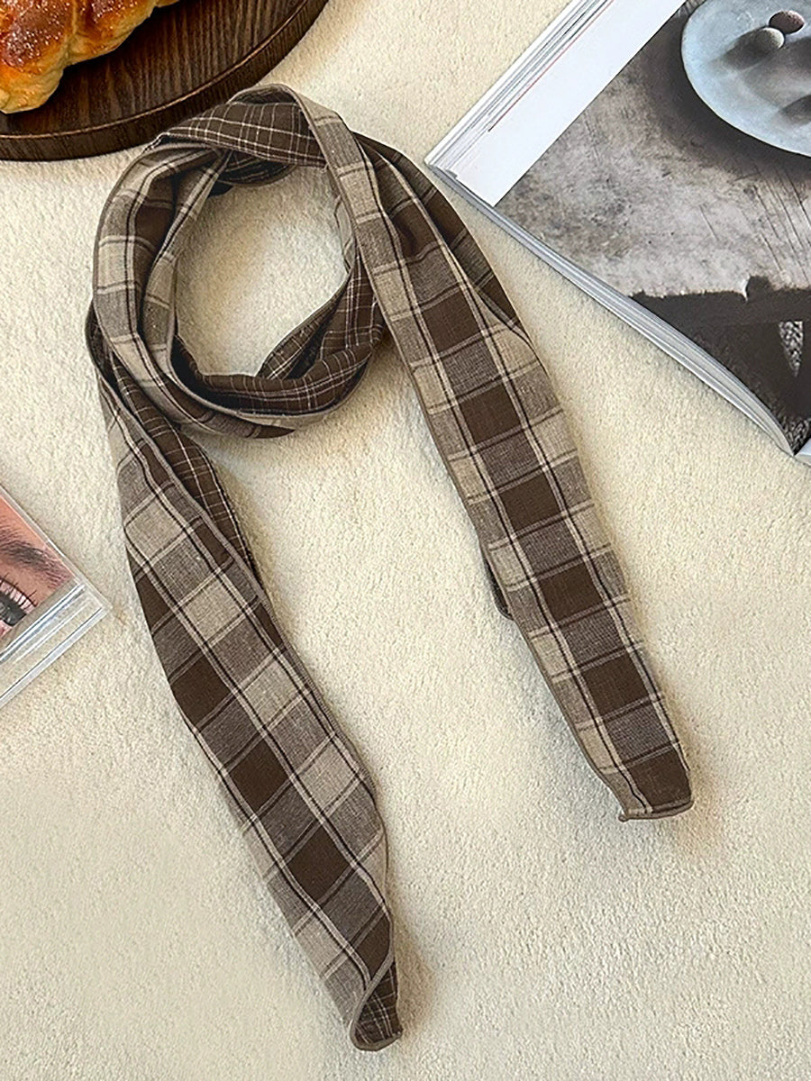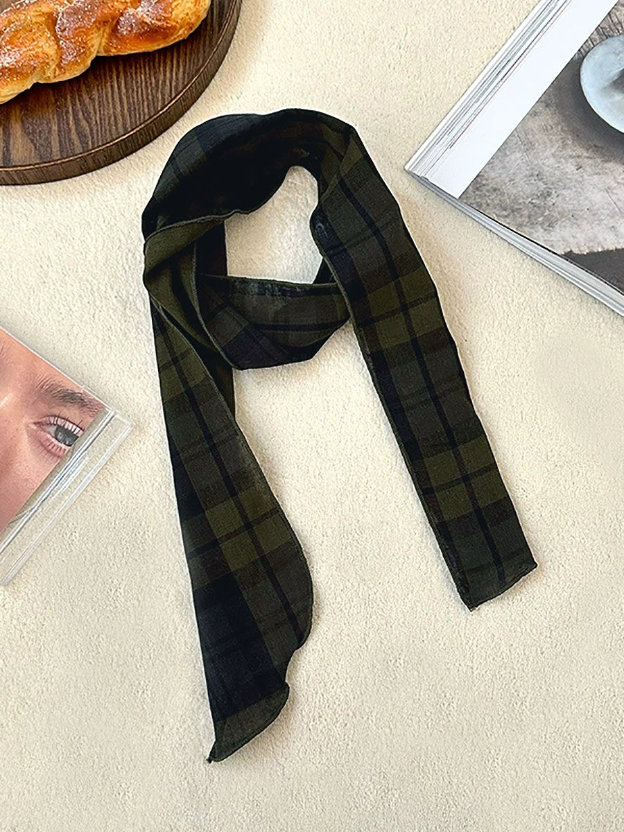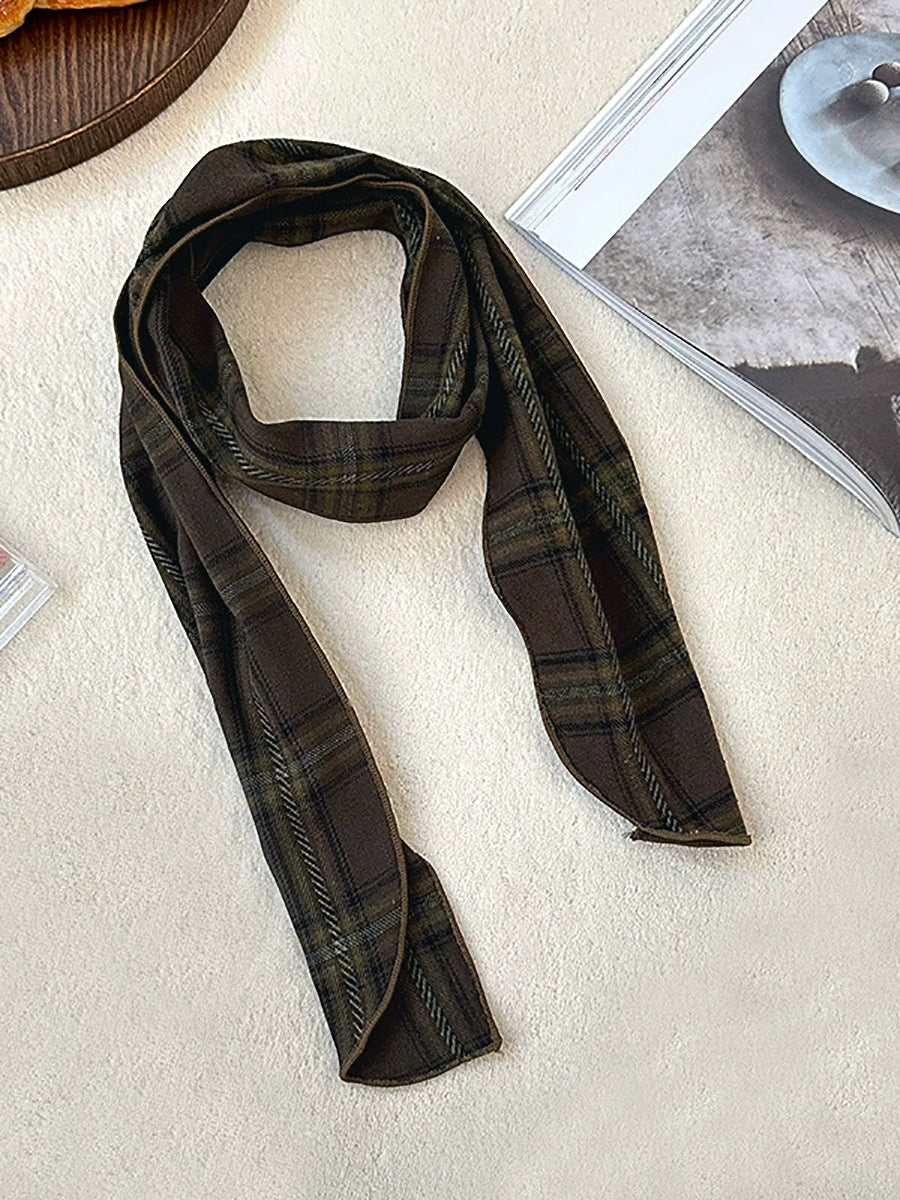 Vintage Plaid Thin Narrow Versatile Scarf