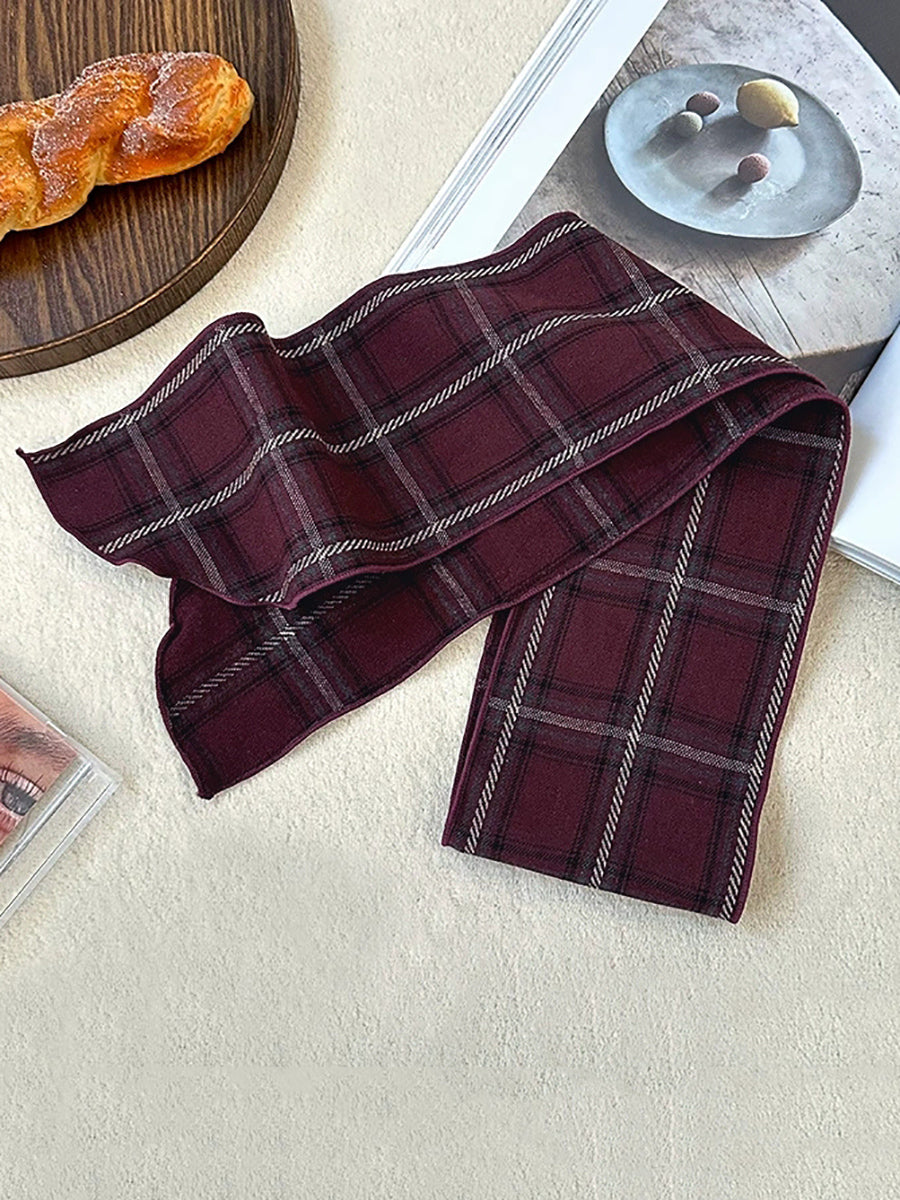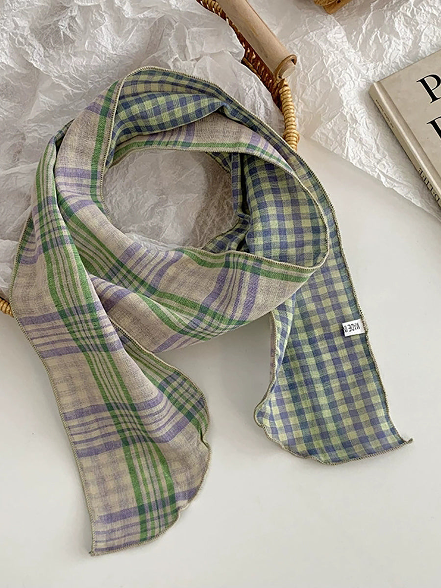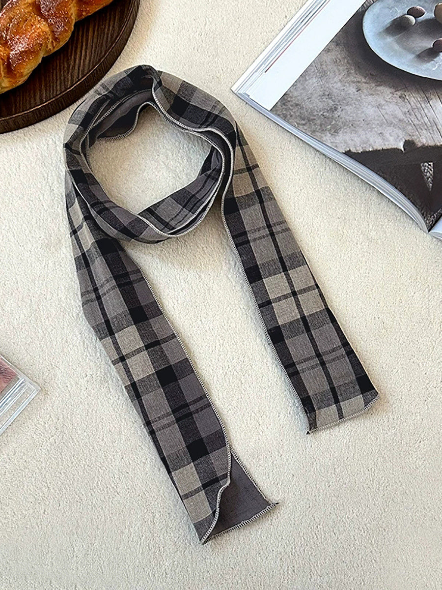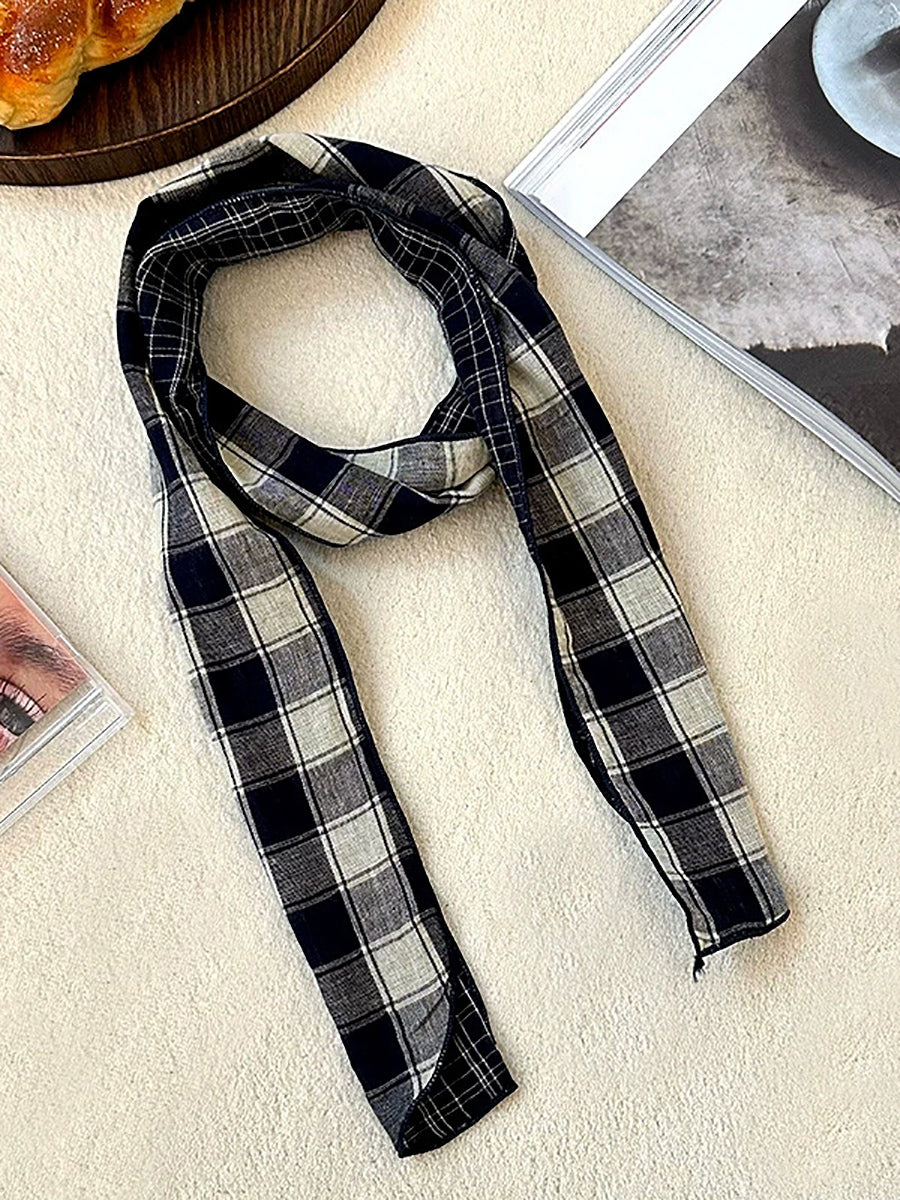 Vintage Plaid Thin Narrow Versatile Scarf