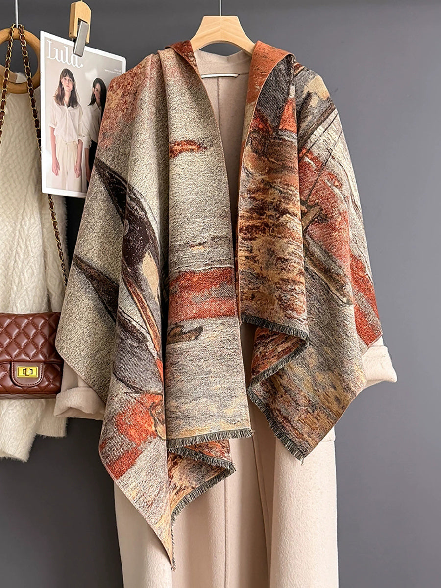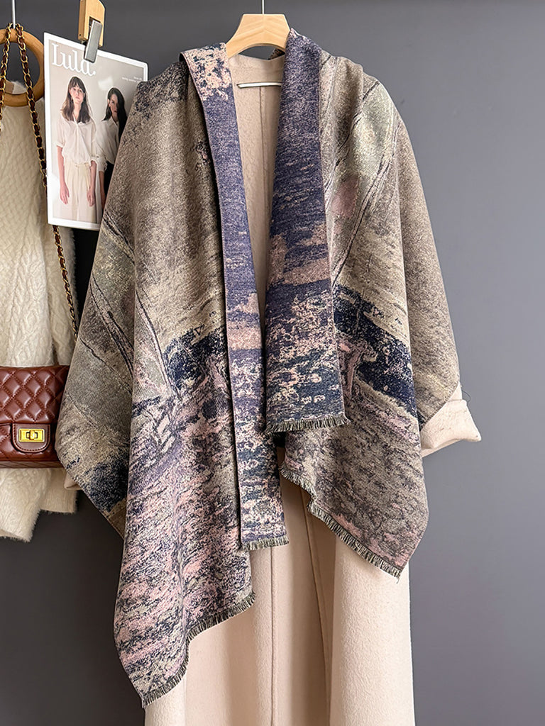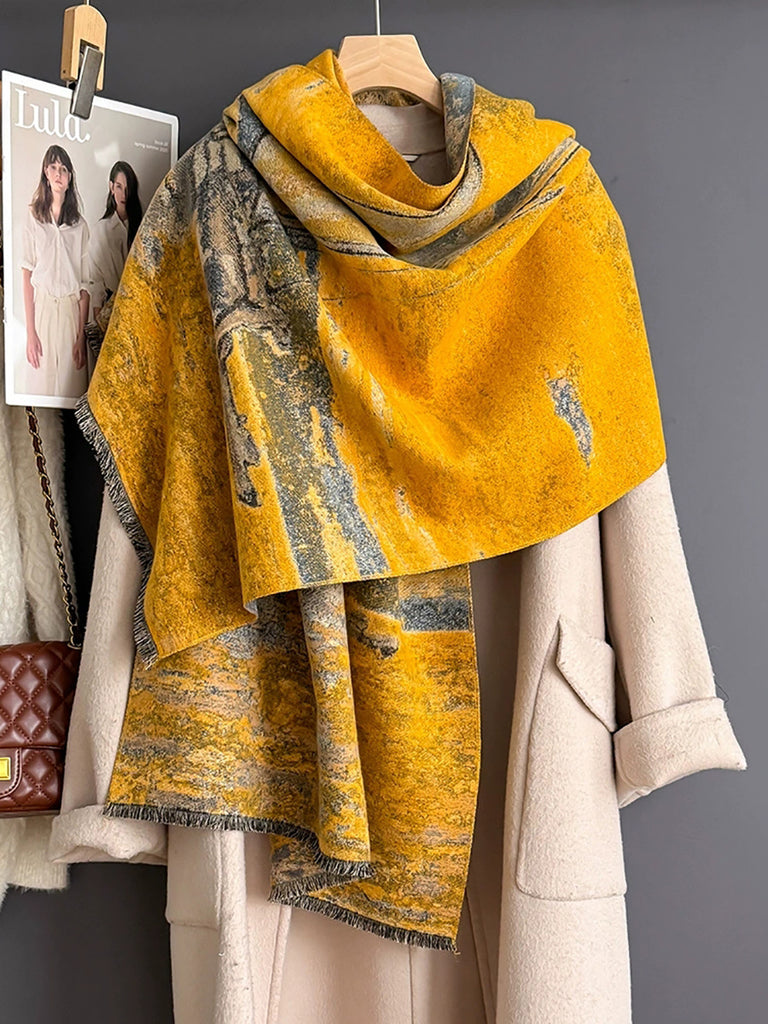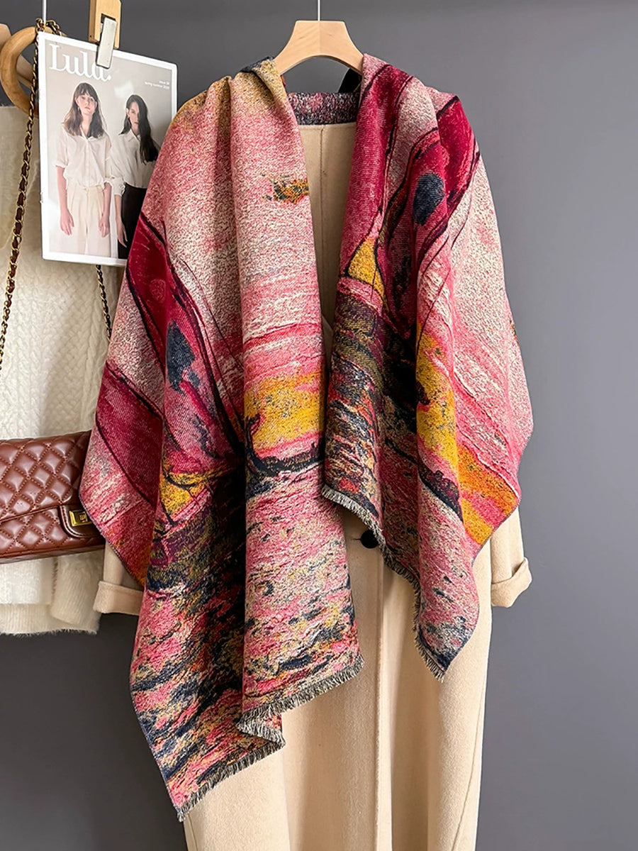 Vintage Winter Oil Painting Sailing Boat Shawl Scarf