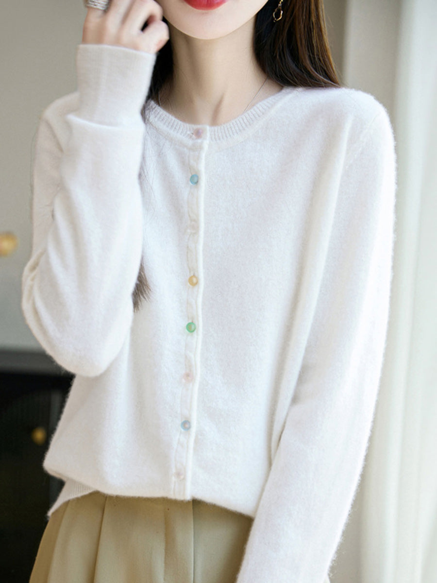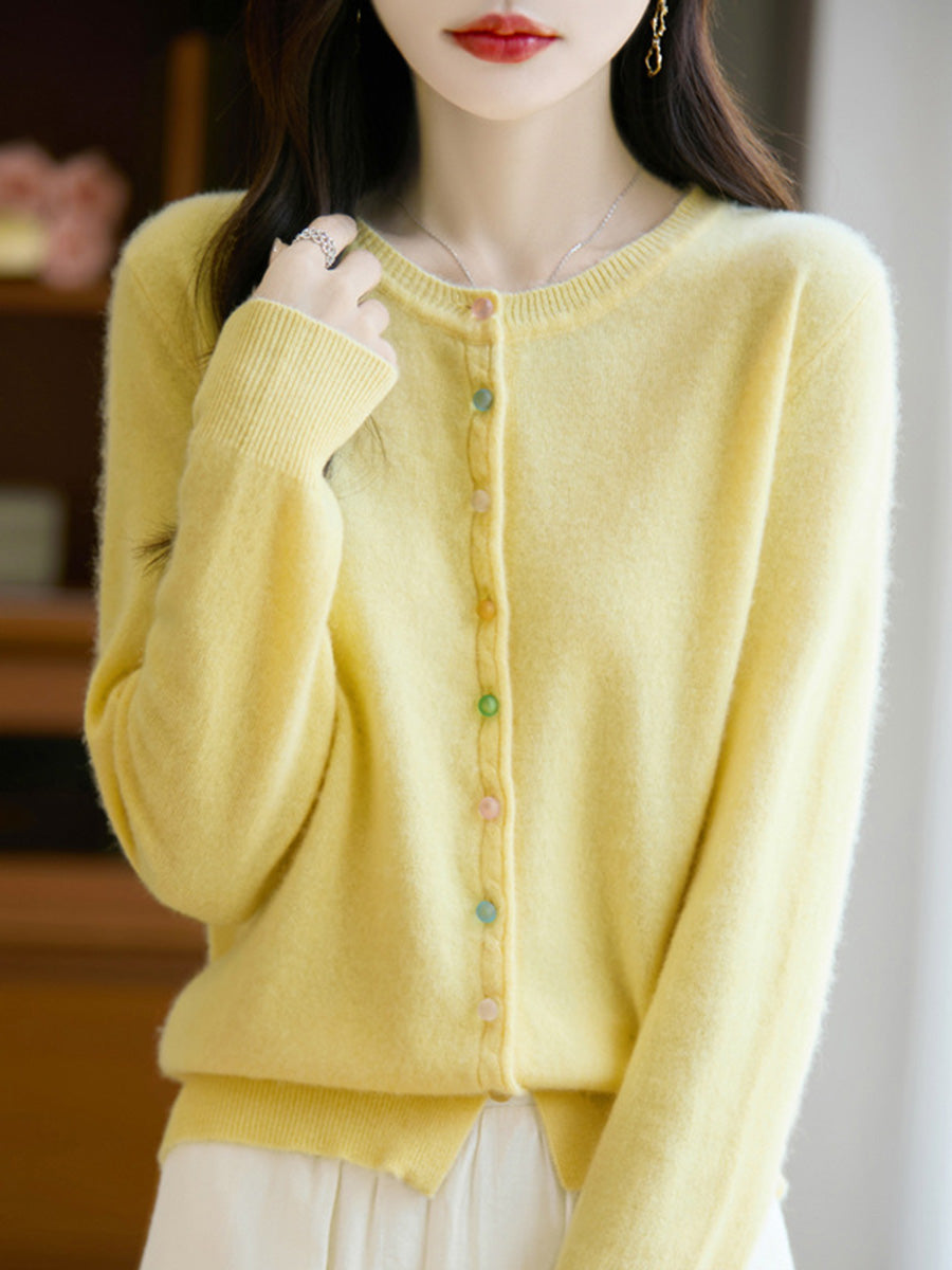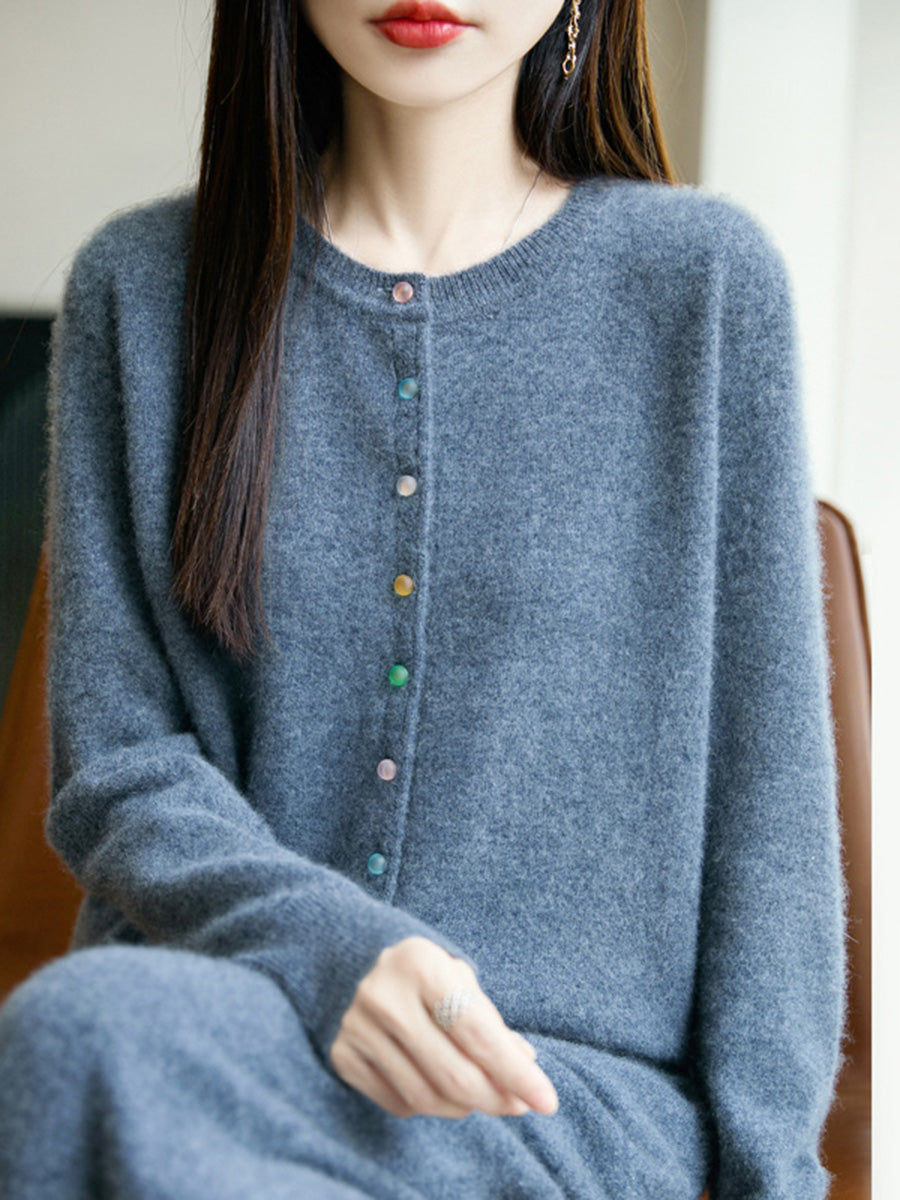 Women Autumn Casual Pure Color O-Neck Wool Sweater