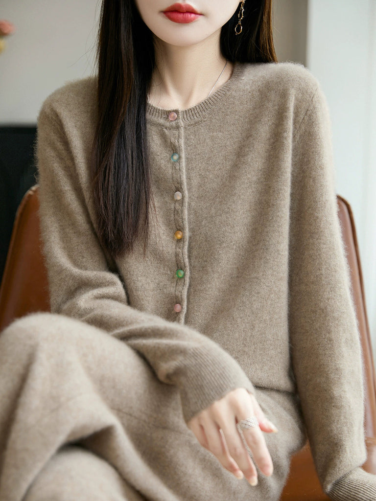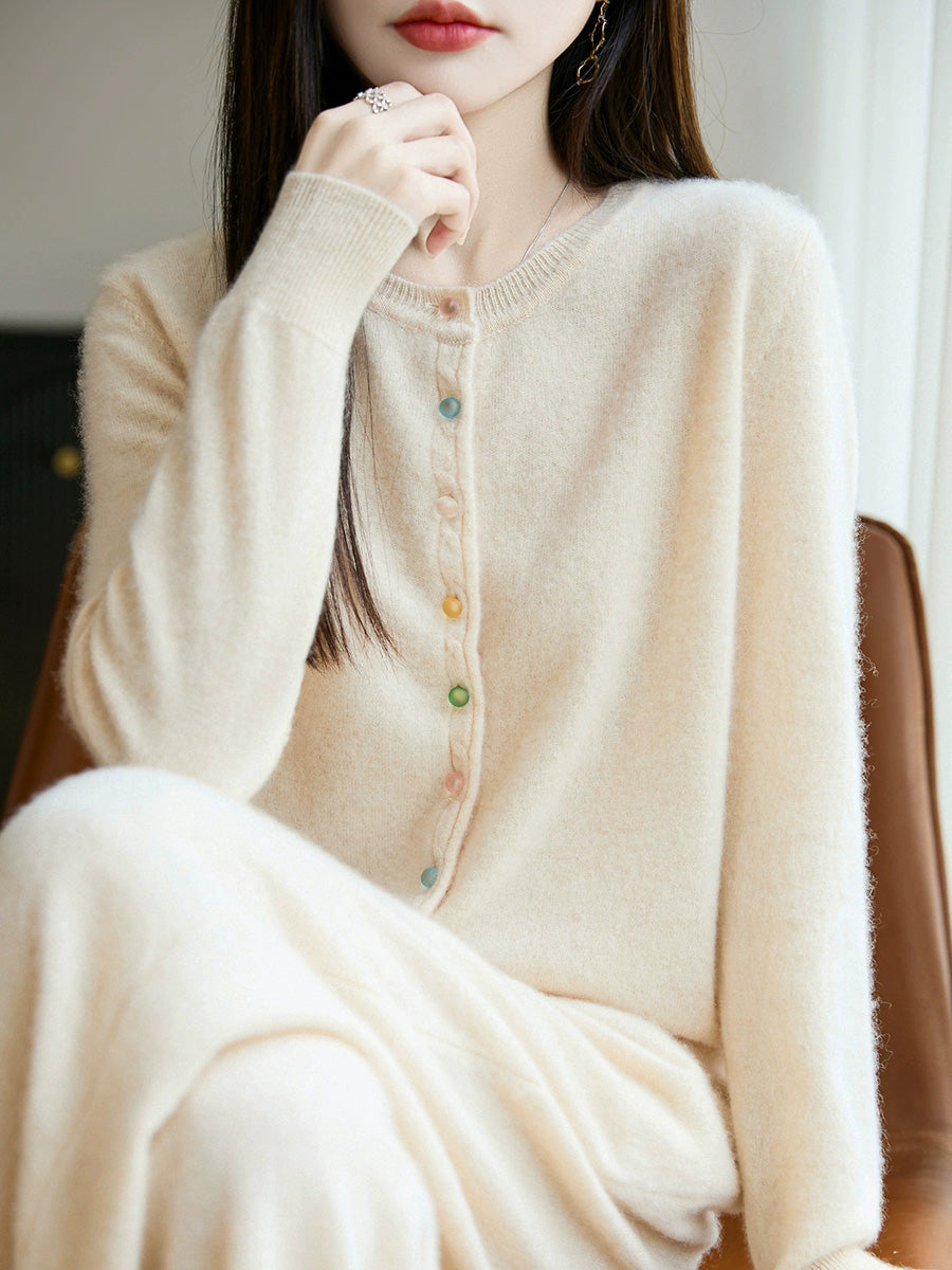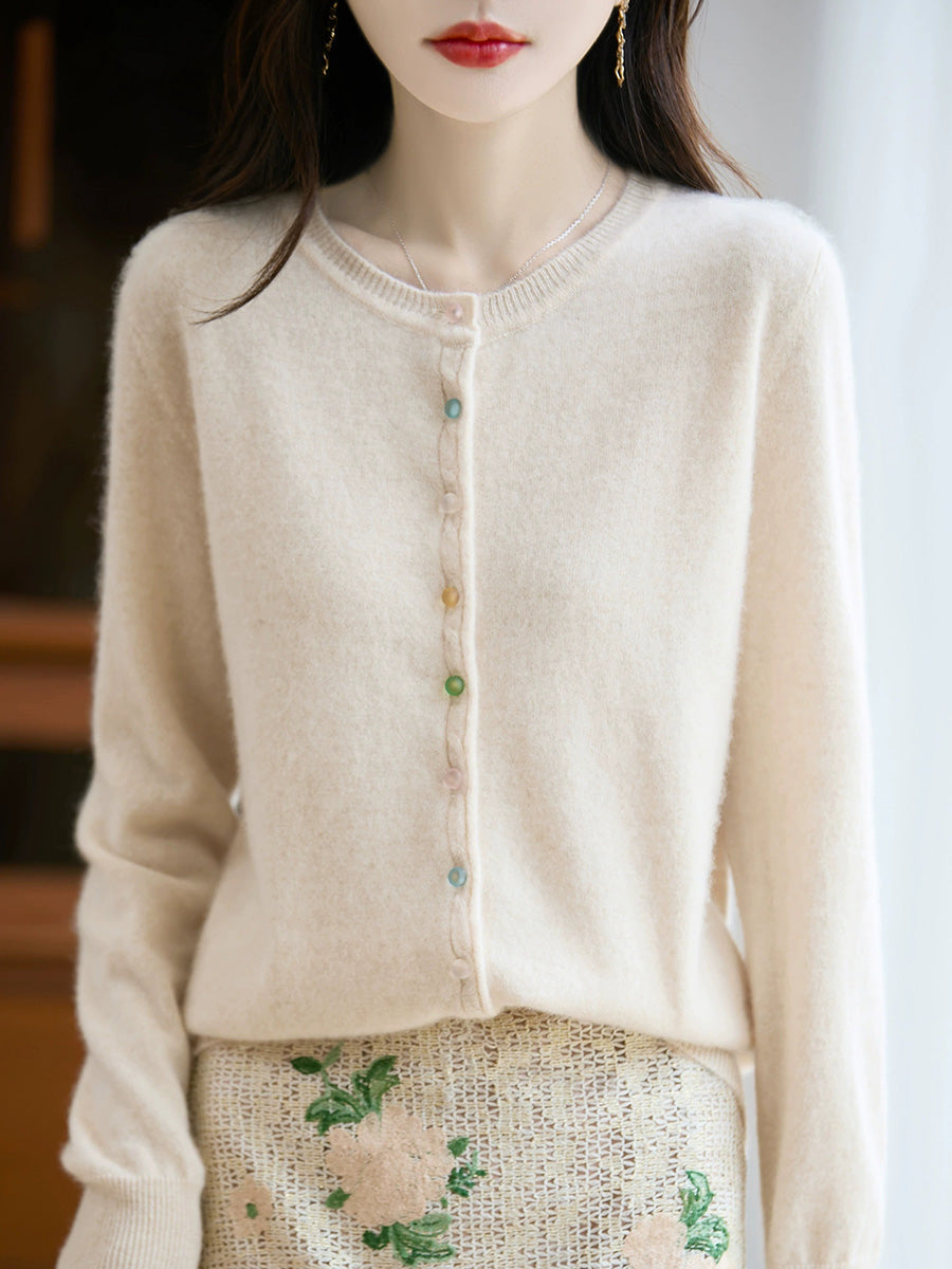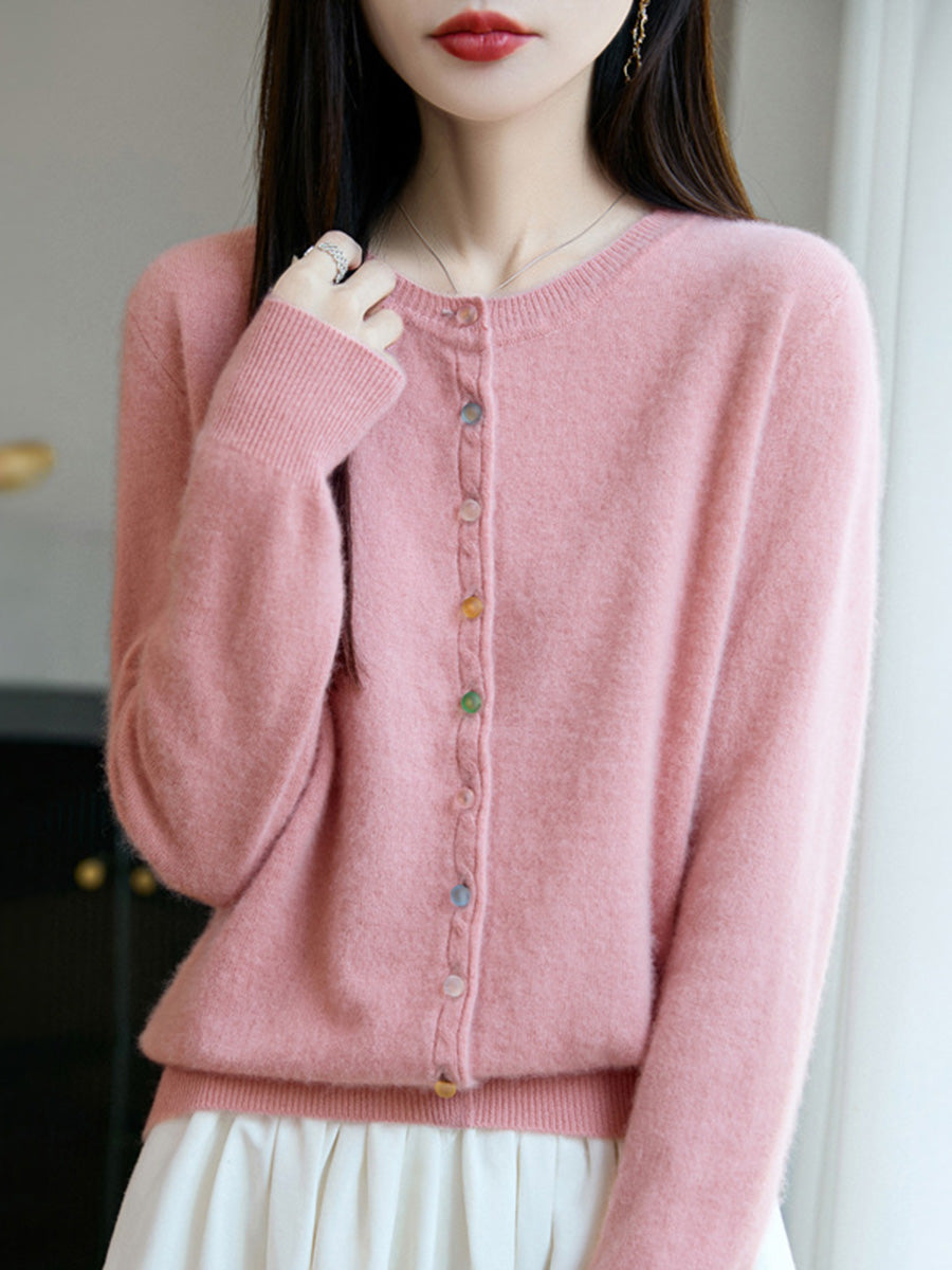 Women Autumn Casual Pure Color O-Neck Wool Sweater