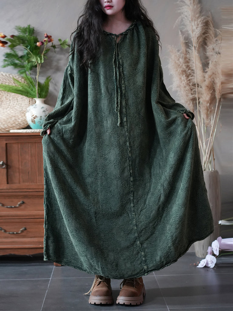 Women Autumn Retro Jacquard O-Neck Dress