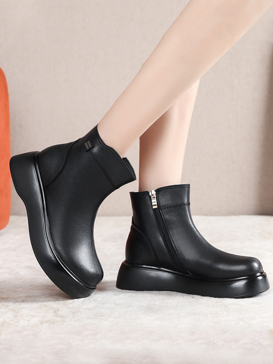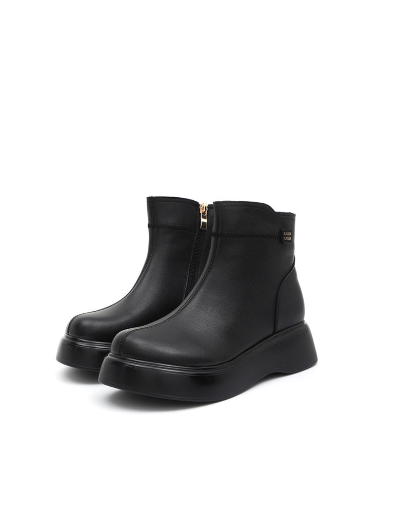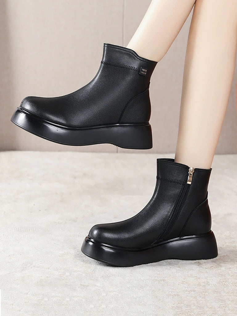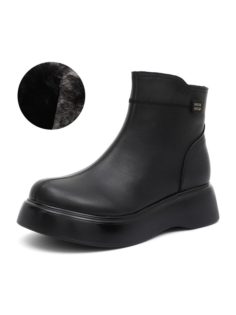 Women Casual Pure Color Spliced Platform Ankle Boots