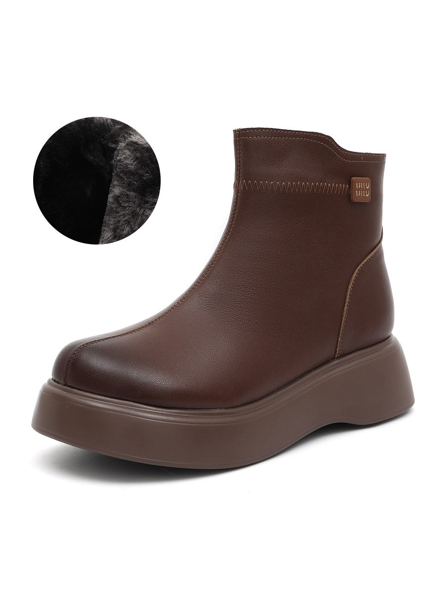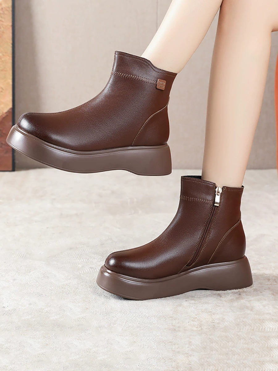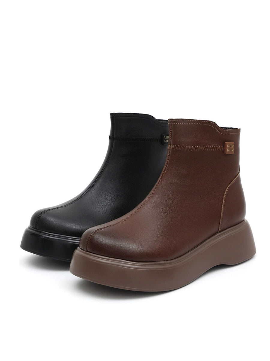 Women Casual Pure Color Spliced Platform Ankle Boots