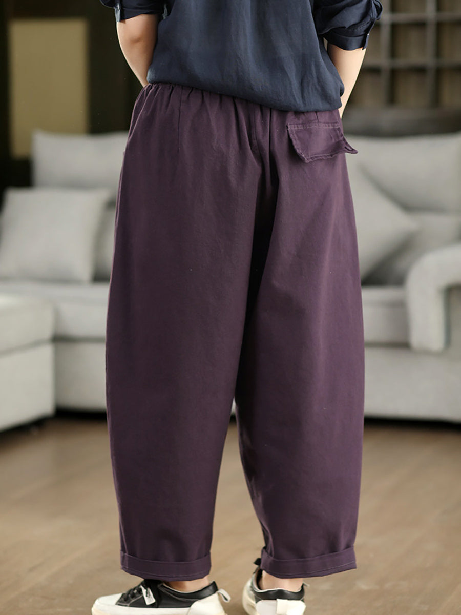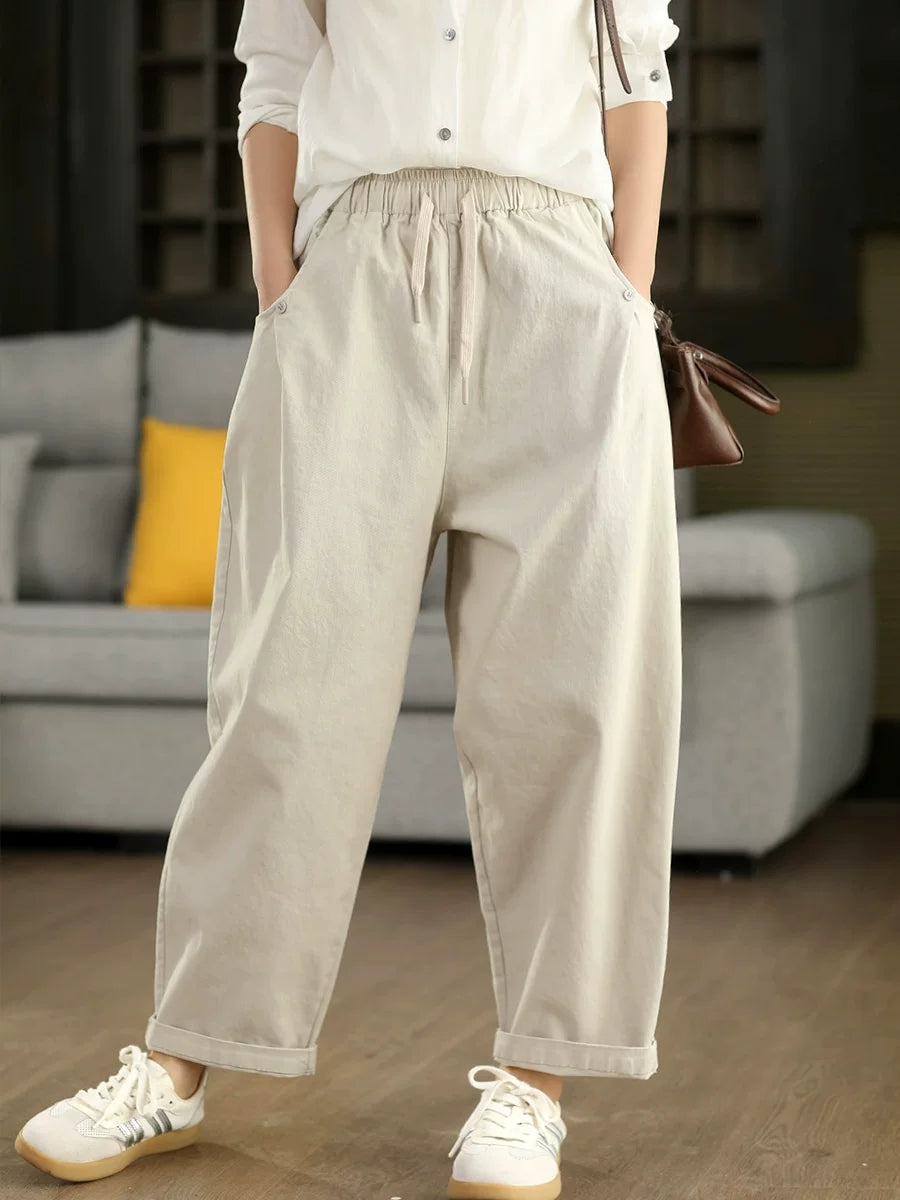 Women Spring Casual Pure Color 100%Cotton Harem Pants