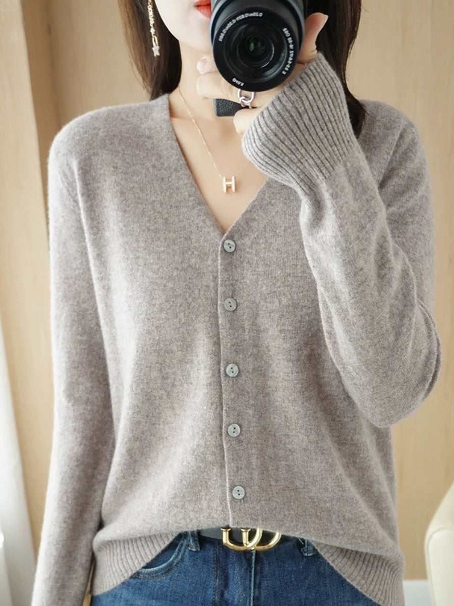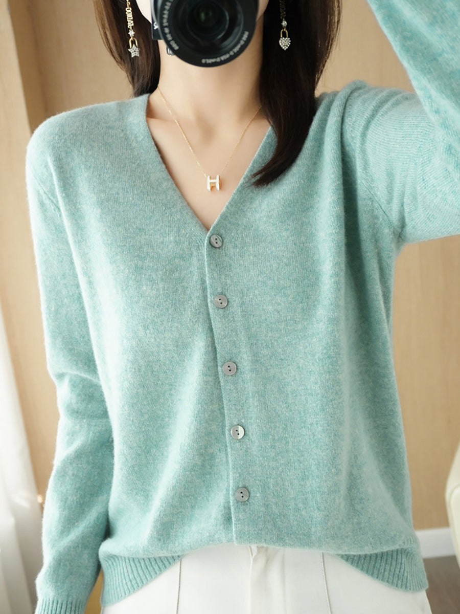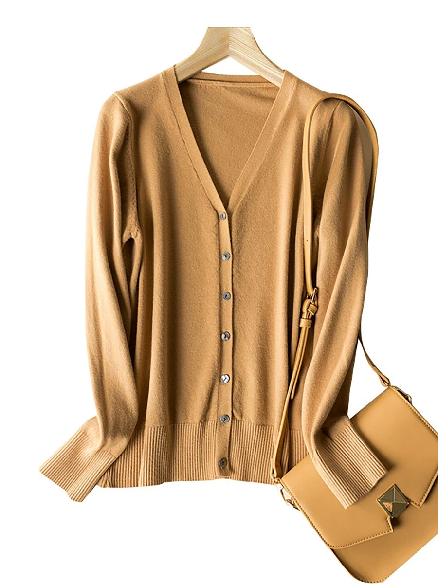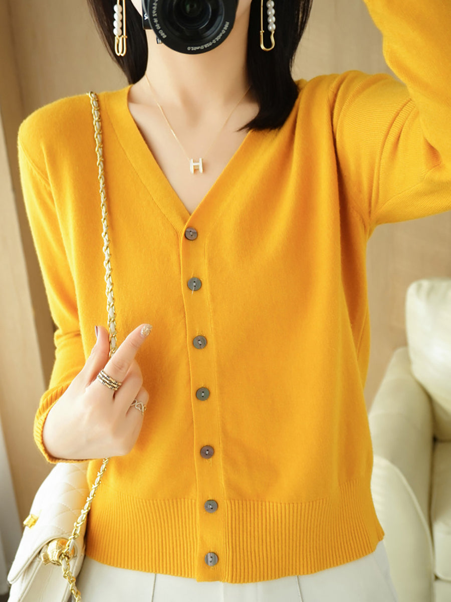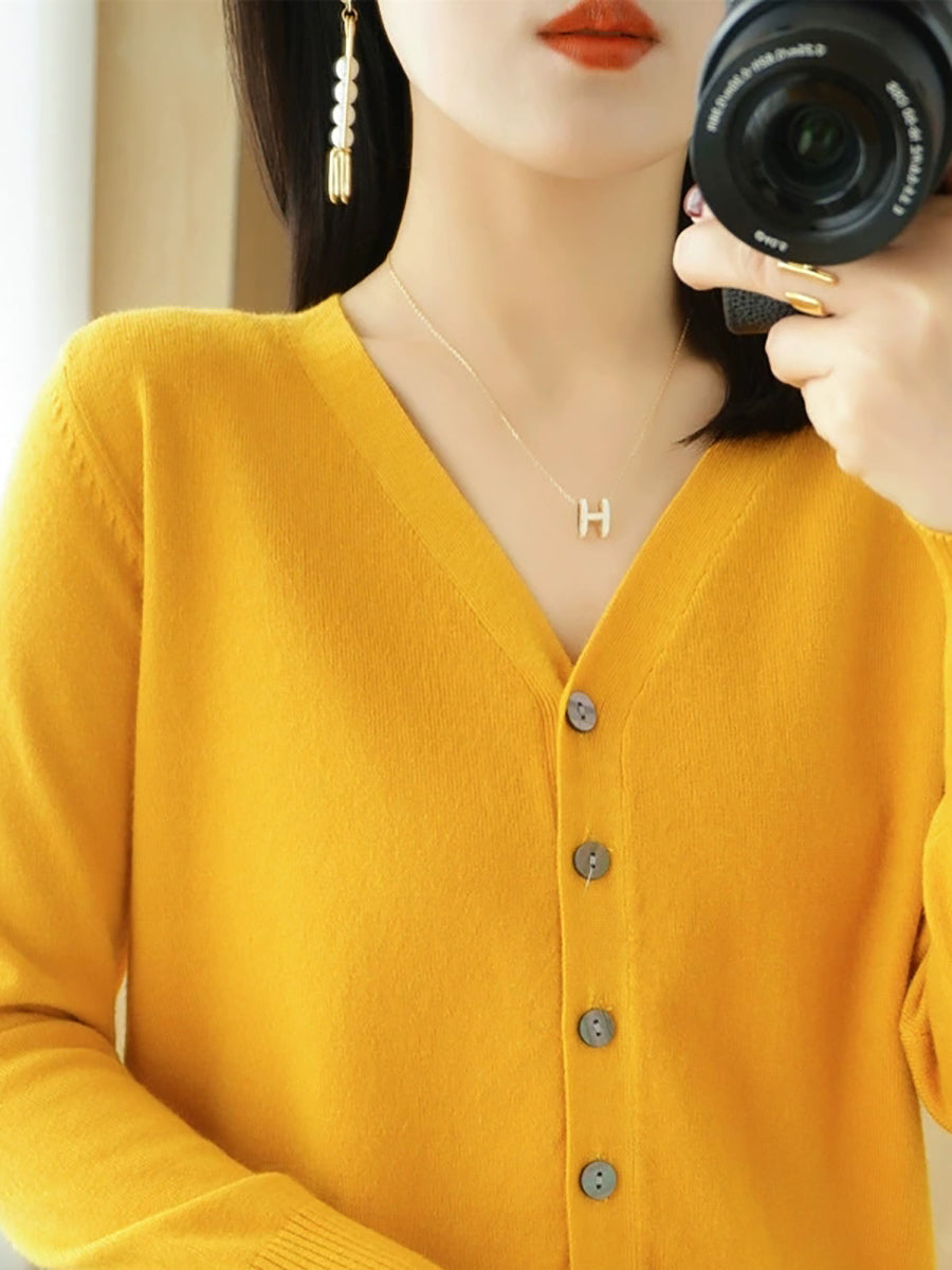 Women Spring Casual Pure Color V-Neck Sweater