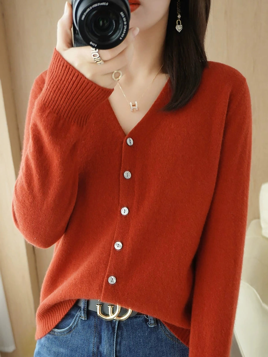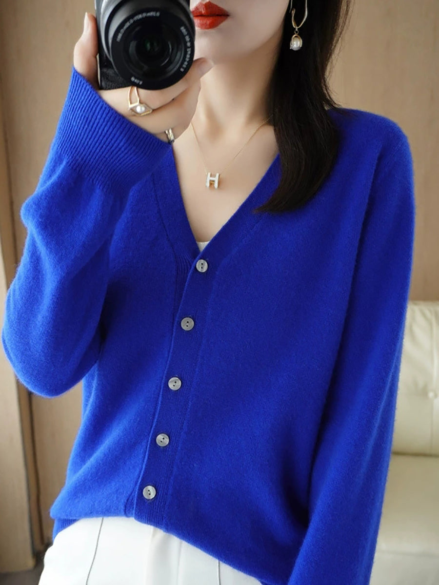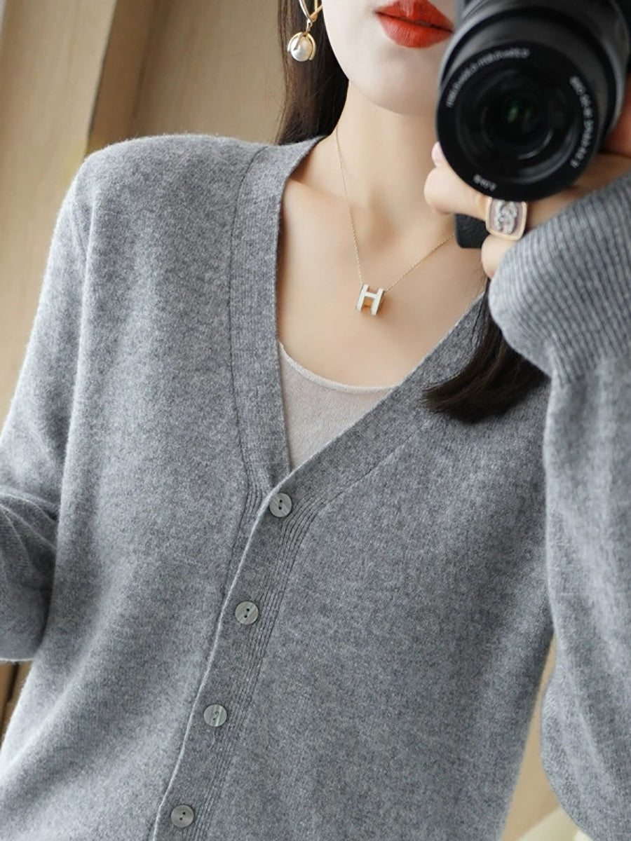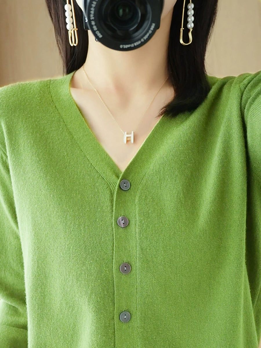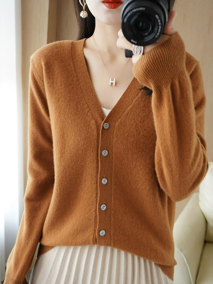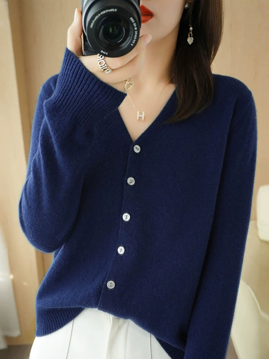 Women Spring Casual Pure Color V-Neck Sweater