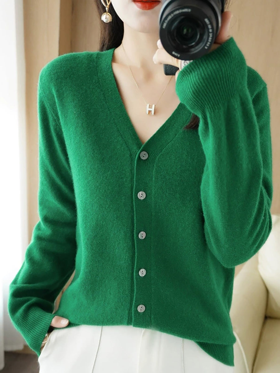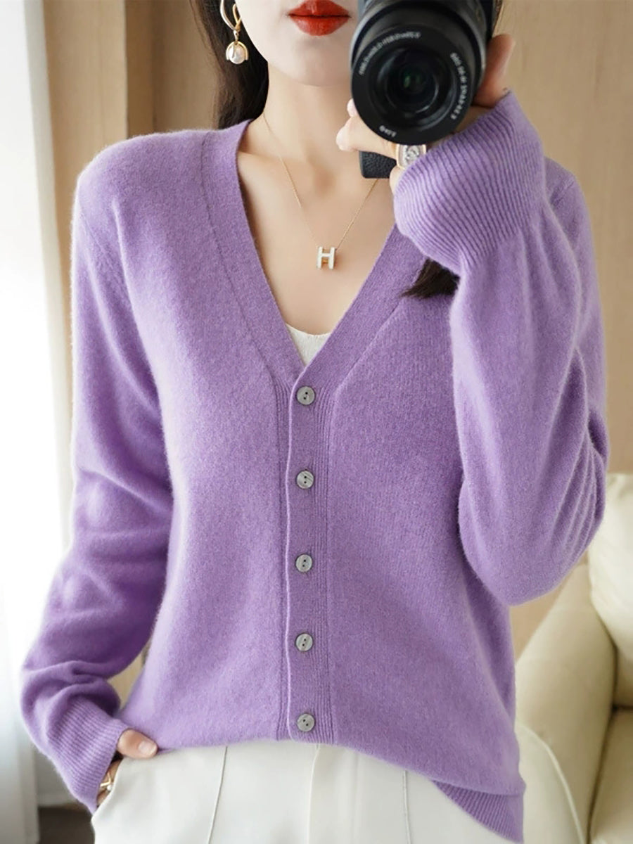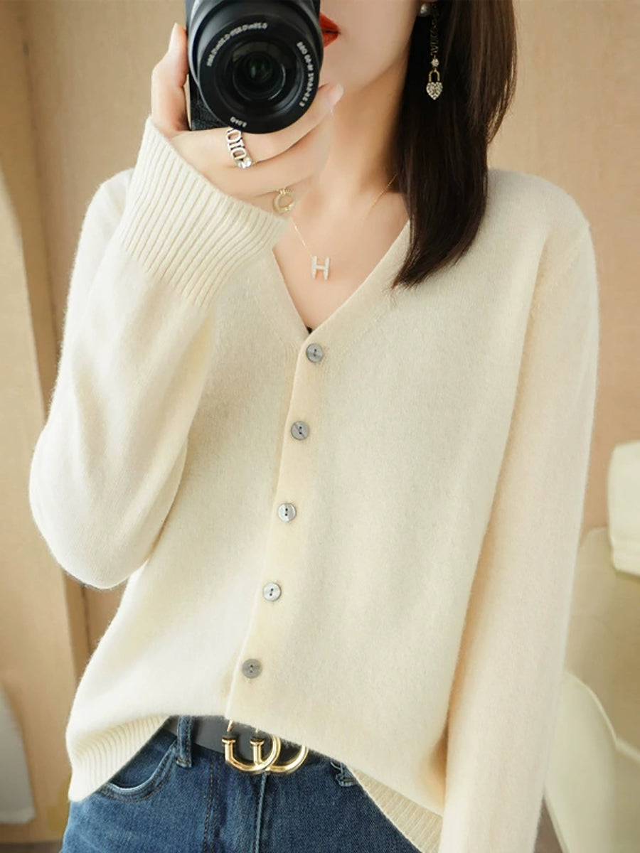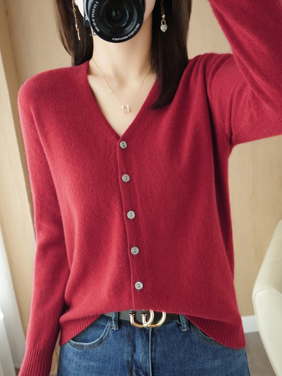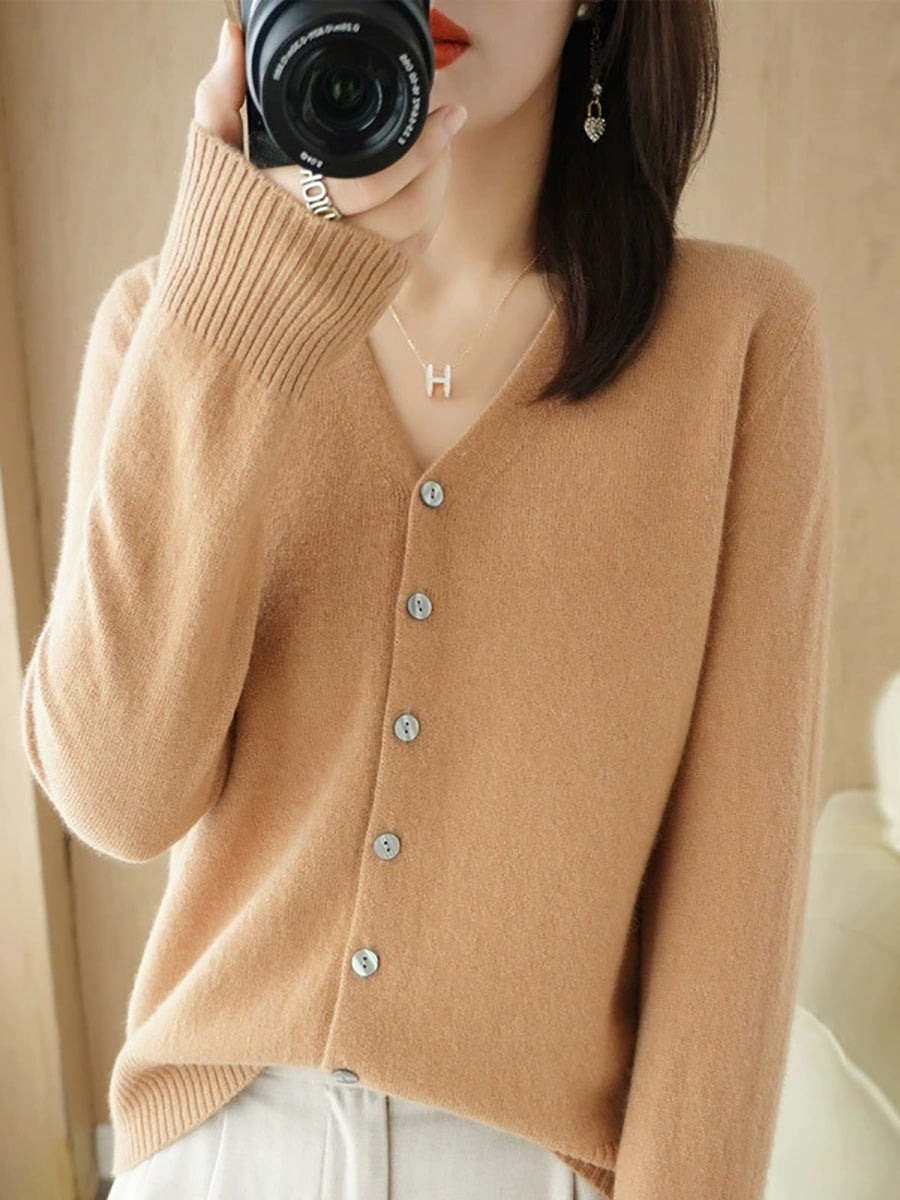 Women Spring Casual Pure Color V-Neck Sweater