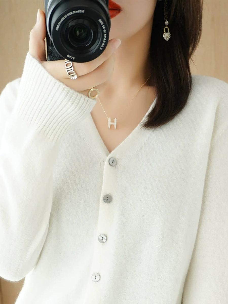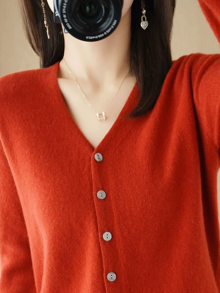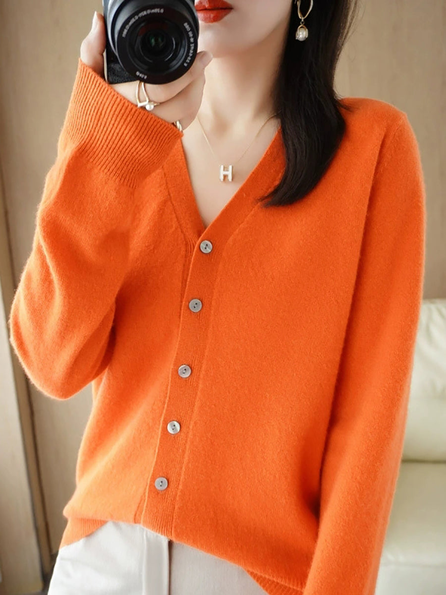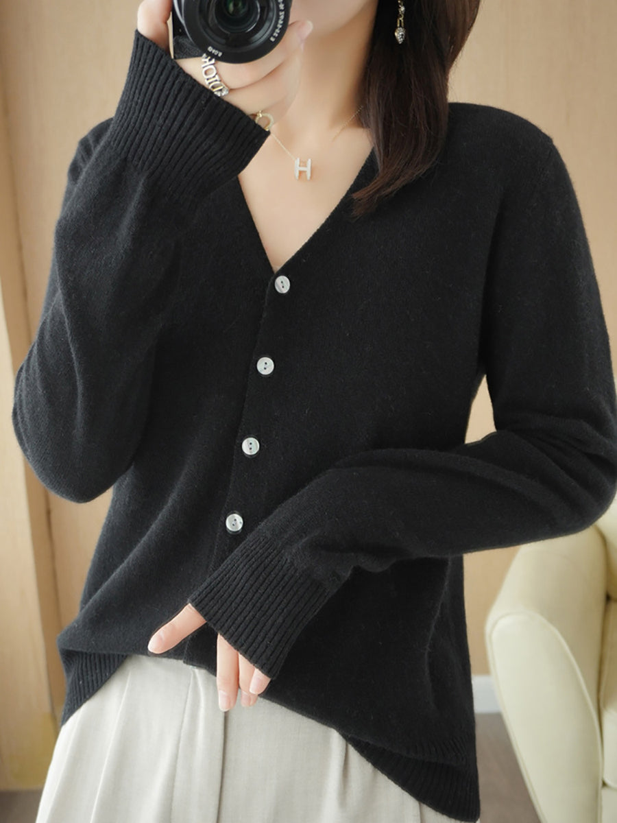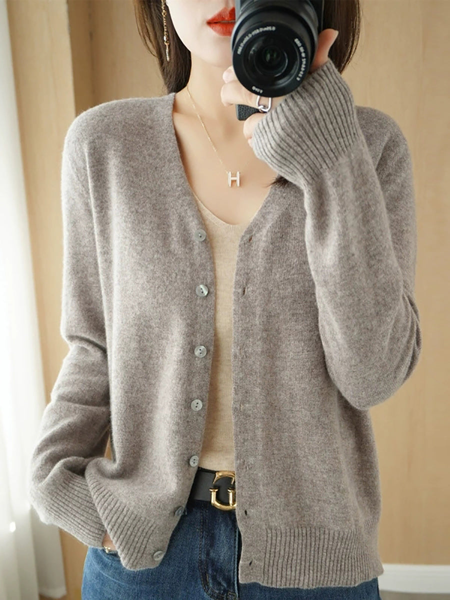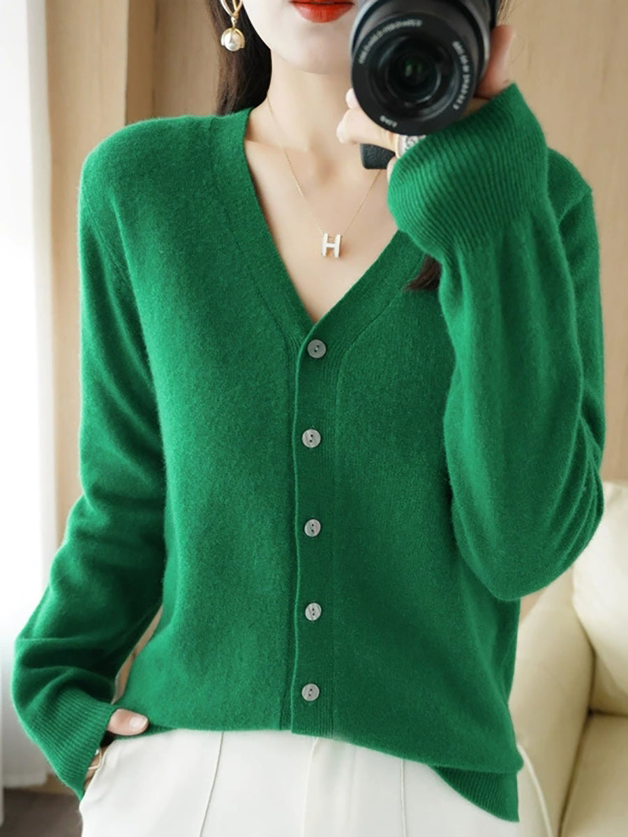 Women Spring Casual Pure Color V-Neck Sweater
