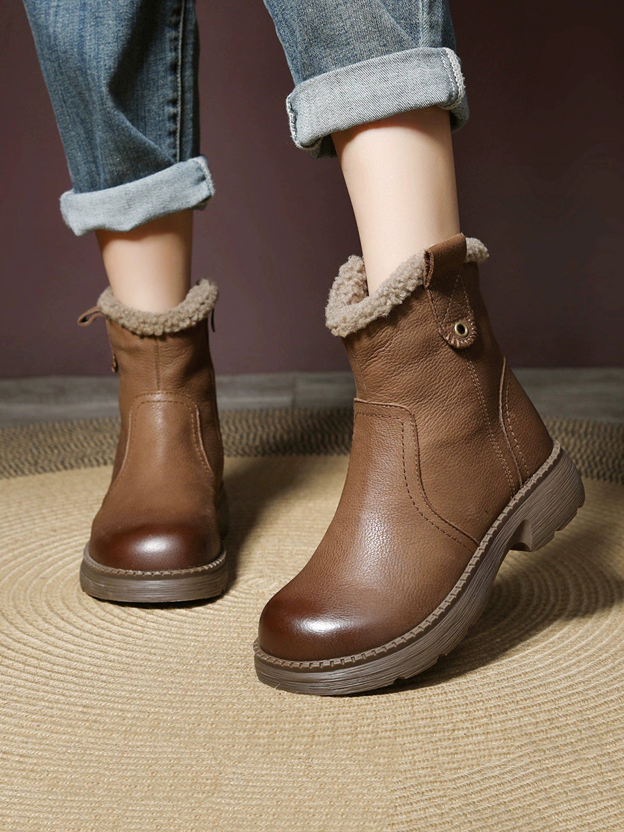 Women Winter Pure Color Genuine Leather Fleece-lined Boots