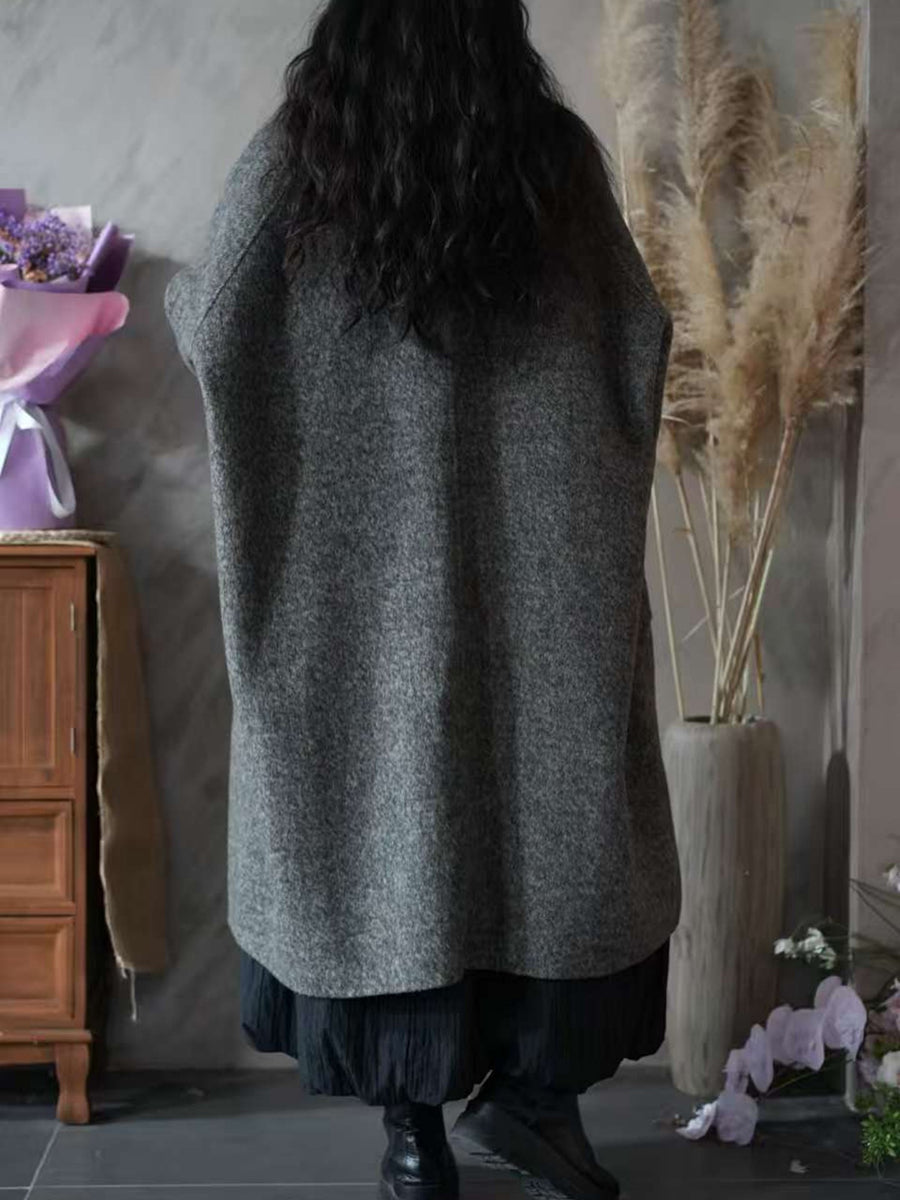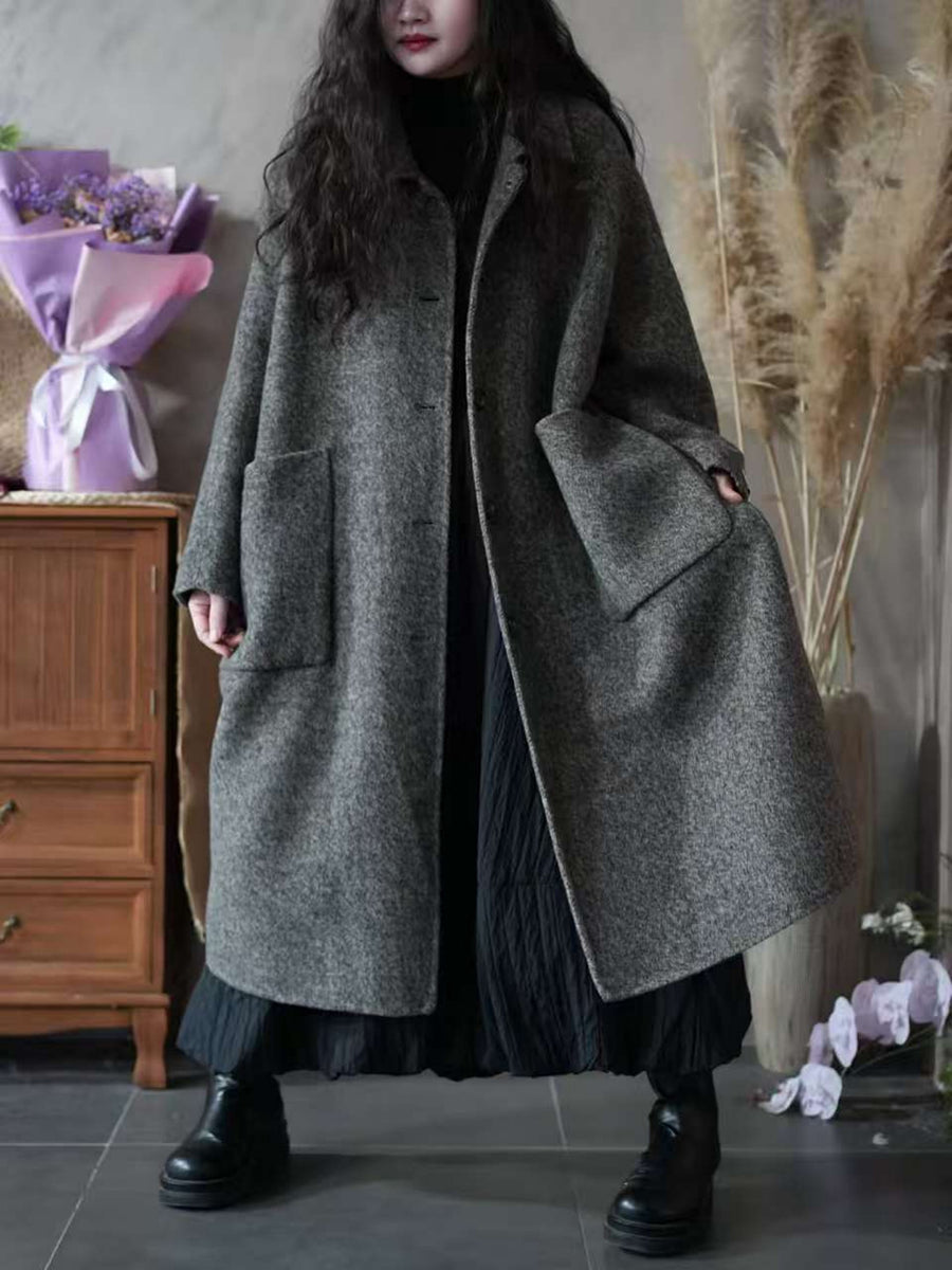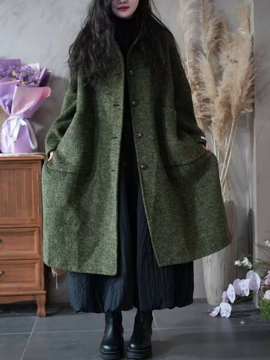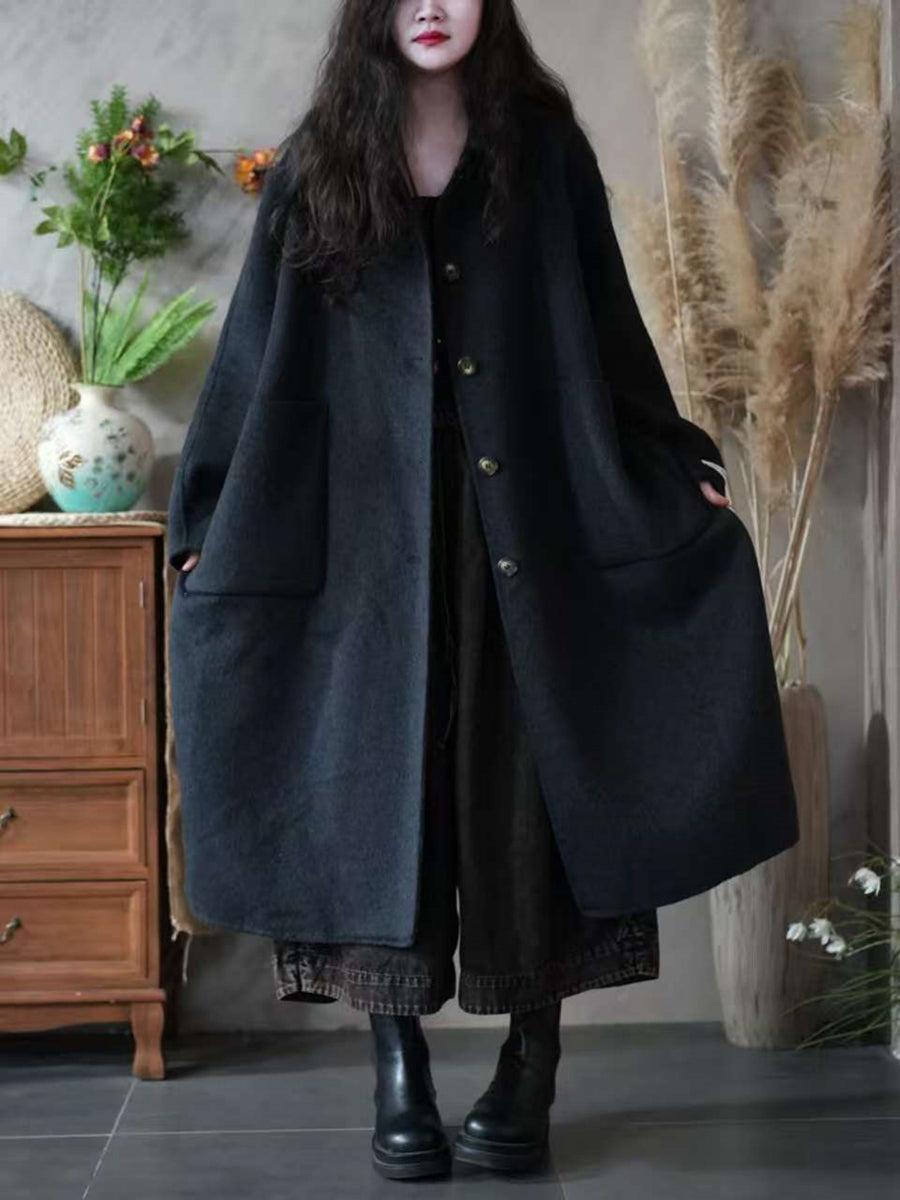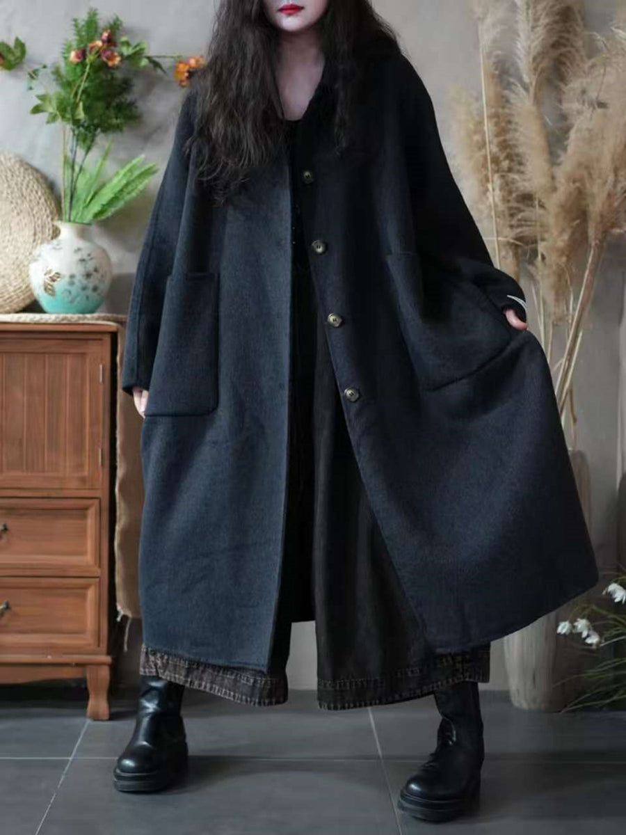 Women Winter Pure Color Turn-down Collar Fleece Overcoat